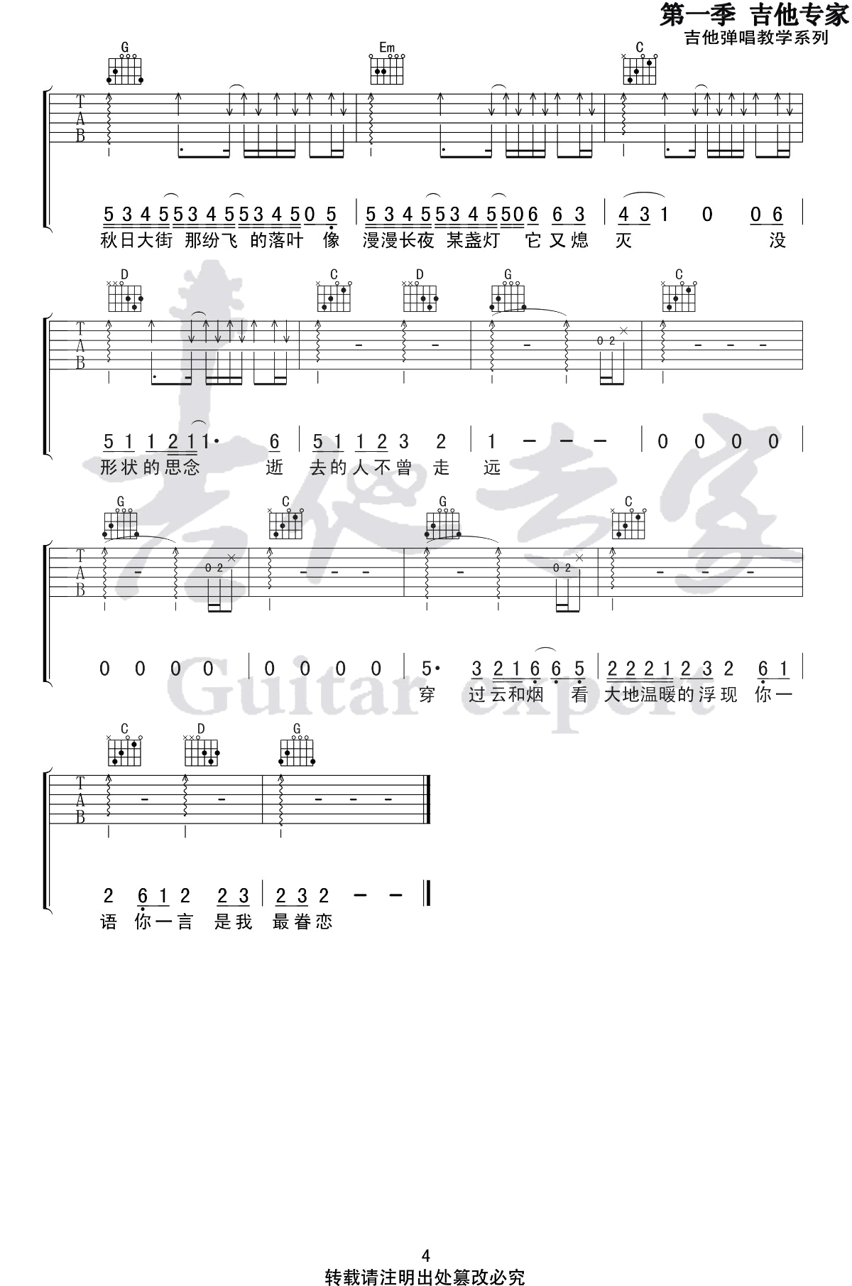 旅行团乐队《逝去的歌吉他谱》(G调)