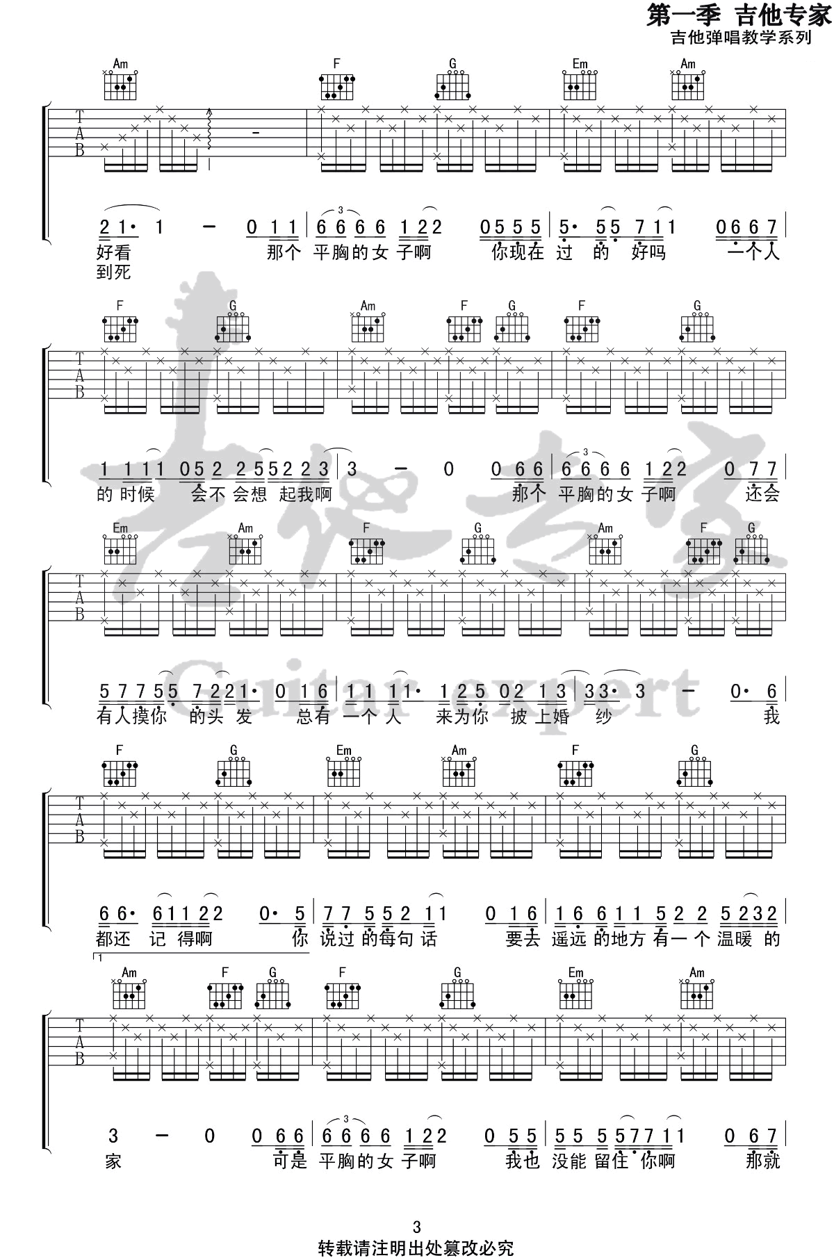 《枯木逢春《平胸女子吉他谱》(C调)》内容来自于互联网,不能保证内容的准确性与完整性,仅供学习交流欣赏,请勿用于其它用途,内容版权归原作者及来源网站所有,如有侵犯到您的权益请来信告知,我们将及时删除。