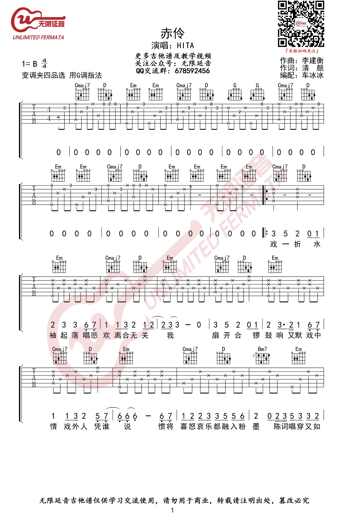 《HITA《赤伶吉他谱》(G调)》内容来自于互联网,不能保证内容的准确性与完整性,仅供学习交流欣赏,请勿用于其它用途,内容版权归原作者及来源网站所有,如有侵犯到您的权益请来信告知,我们将及时删除。