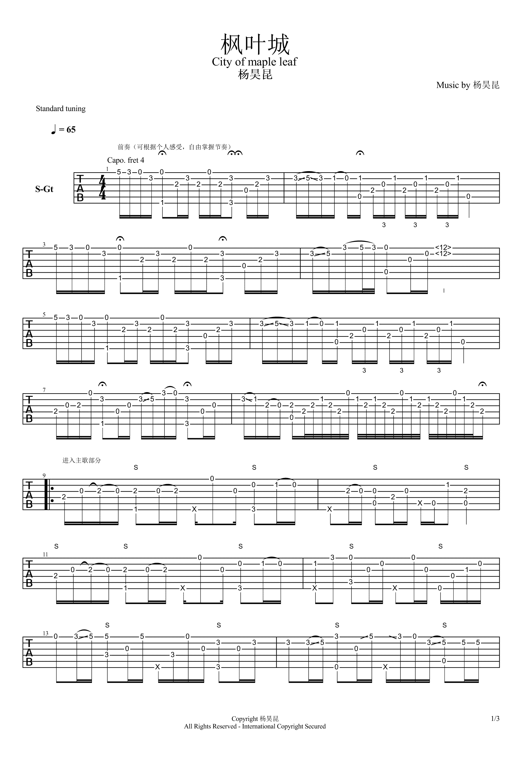 《枫叶《城吉他谱》》内容来自于互联网,不能保证内容的准确性与完整性,仅供学习交流欣赏,请勿用于其它用途,内容版权归原作者及来源网站所有,如有侵犯到您的权益请来信告知,我们将及时删除。