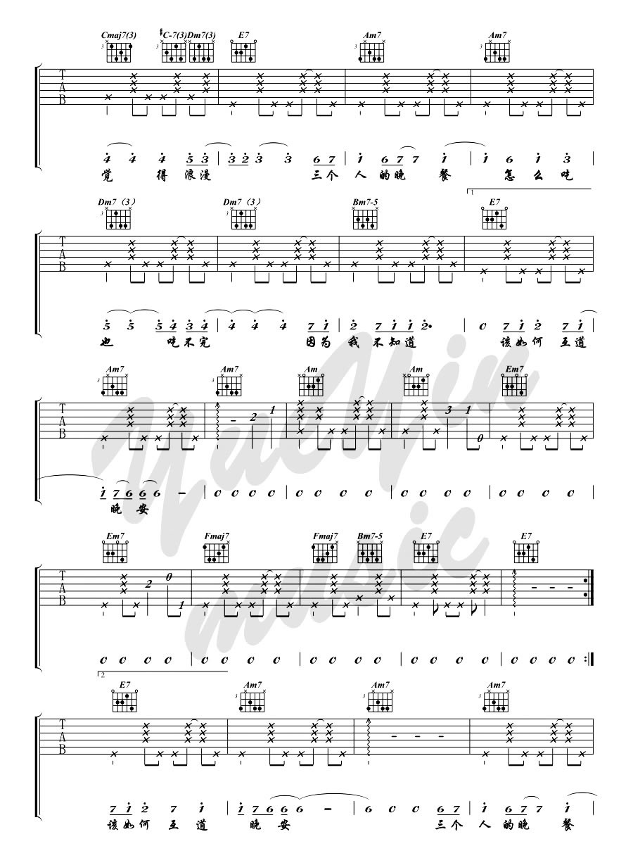 《王若琳《三个人的晚餐吉他谱》》内容来自于互联网,不能保证内容的准确性与完整性,仅供学习交流欣赏,请勿用于其它用途,内容版权归原作者及来源网站所有,如有侵犯到您的权益请来信告知,我们将及时删除。