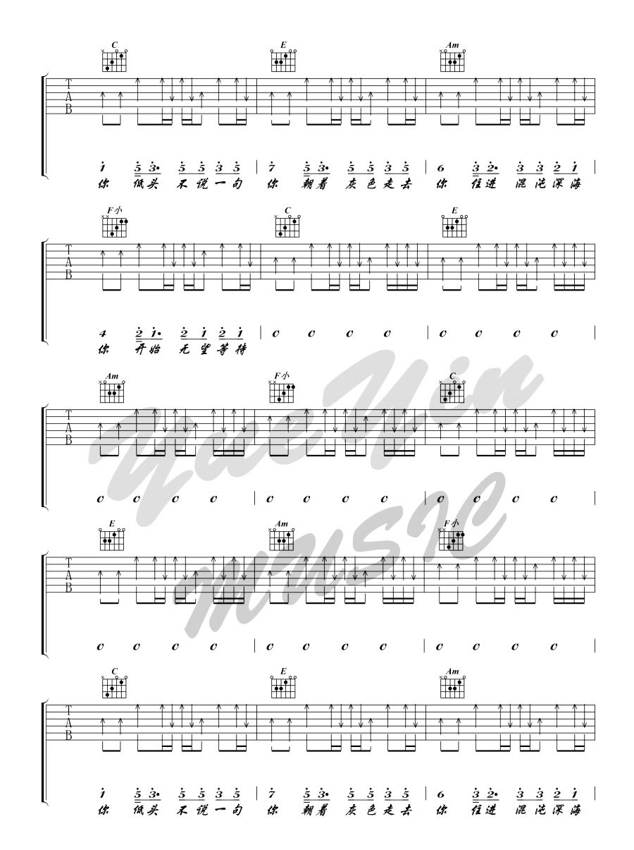 陈粒的《光》吉他谱以原调D变调,夹二品C调指法呈现。共分五张图片谱子,分两页呈现完整版。陈粒的歌声如同一股清流,优美的旋律中蕴含着淡淡的忧伤与坚定的力量。此谱附有李明瑶老师的吉他弹唱教学,可供琴友参考学习。演奏时需注意放缓速度,保持右手节奏稳定;唱词时要将情感