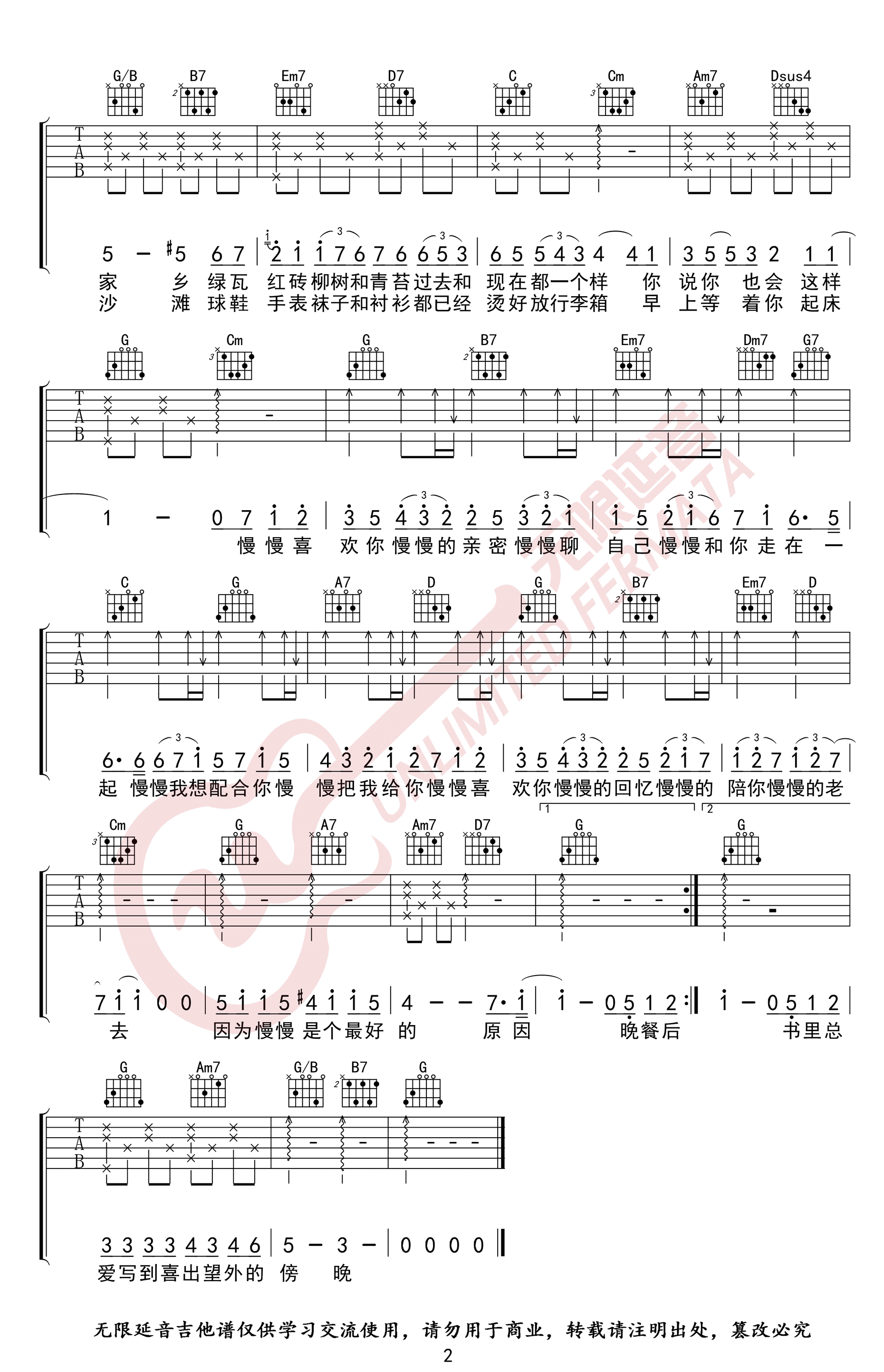 《李荣浩《慢慢喜欢你吉他谱》(G调)》内容来自于互联网,不能保证内容的准确性与完整性,仅供学习交流欣赏,请勿用于其它用途,内容版权归原作者及来源网站所有,如有侵犯到您的权益请来信告知,我们将及时删除。