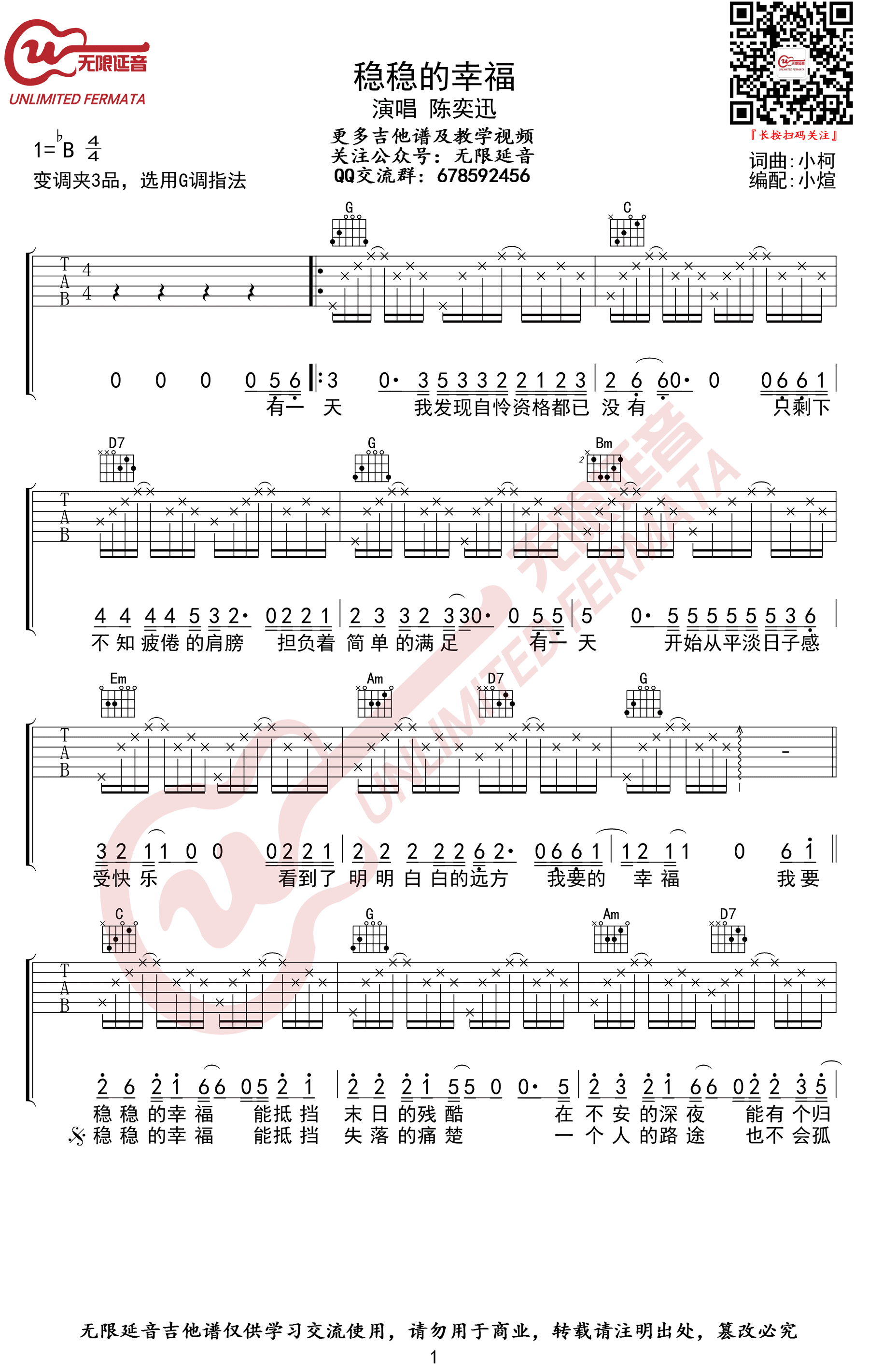 《陈奕迅《稳稳的幸福吉他谱》(G调)》内容来自于互联网,不能保证内容的准确性与完整性,仅供学习交流欣赏,请勿用于其它用途,内容版权归原作者及来源网站所有,如有侵犯到您的权益请来信告知,我们将及时删除。