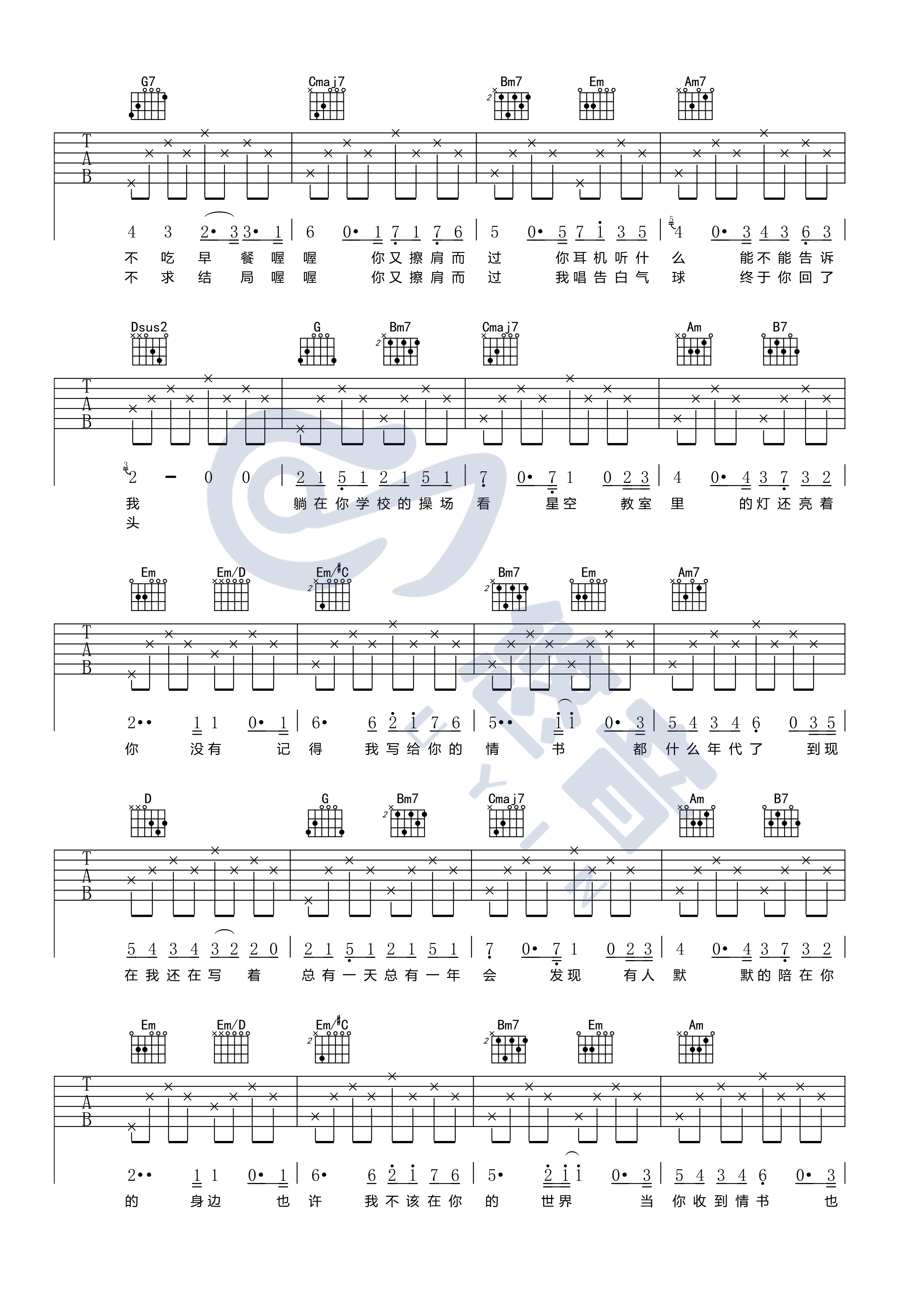 《周杰伦《等你下课吉他谱》(G调)》内容来自于互联网,不能保证内容的准确性与完整性,仅供学习交流欣赏,请勿用于其它用途,内容版权归原作者及来源网站所有,如有侵犯到您的权益请来信告知,我们将及时删除。