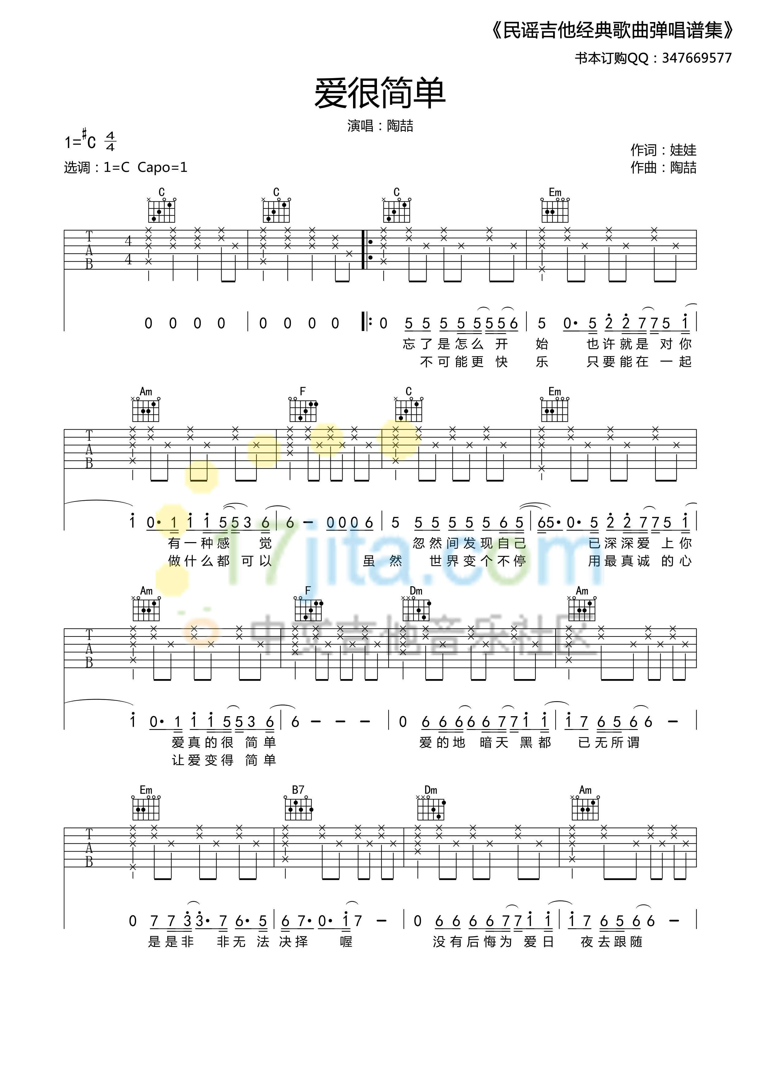 《陶喆《爱很简单吉他谱》》内容来自于互联网,不能保证内容的准确性与完整性,仅供学习交流欣赏,请勿用于其它用途,内容版权归原作者及来源网站所有,如有侵犯到您的权益请来信告知,我们将及时删除。
