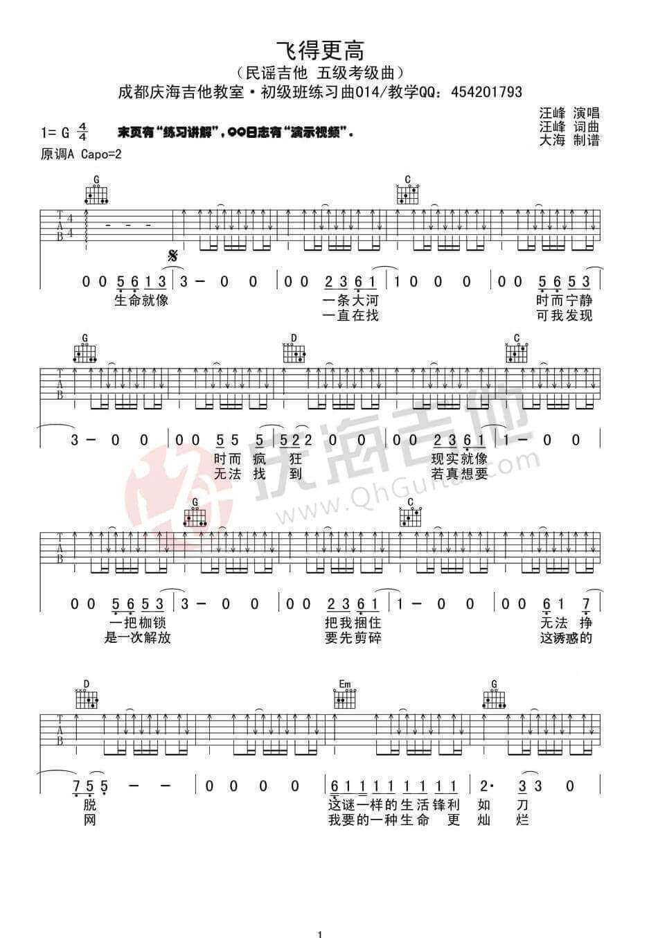《宁静《飞得更高吉他谱》》内容来自于互联网,不能保证内容的准确性与完整性,仅供学习交流欣赏,请勿用于其它用途,内容版权归原作者及来源网站所有,如有侵犯到您的权益请来信告知,我们将及时删除。