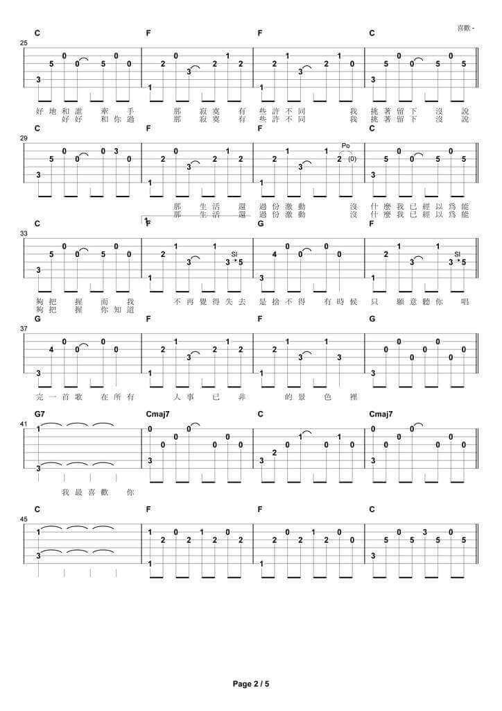 您现在的位置是:首页 > 吉他谱 > 张悬《喜欢吉他谱》 张悬《喜欢吉他谱》 日期:2024-06-01 12:25:01 张悬 张悬的《喜欢》以其深情的吉他弹唱而备受欢迎。通过观看现场演奏视频,我们可以感受到张悬在音乐中流露出的真挚情感。在吉他弹唱演示及视频教学中,不仅展现了技巧娴熟的演奏,还呈现了简化版的演奏方式,使学习者更易掌握。视频中的吉他谱和文本和弦谱为学习者提供了实用而全面的