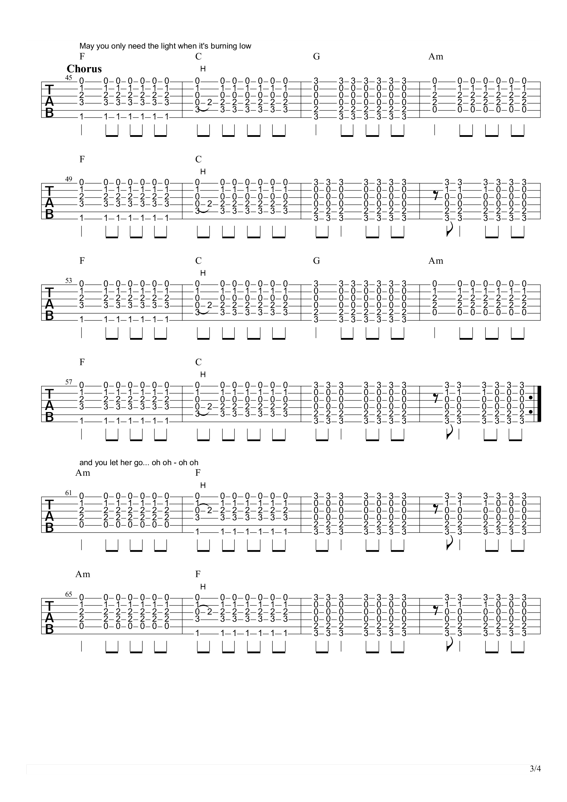 《《let her go吉他谱》》内容来自于互联网,不能保证内容的准确性与完整性,仅供学习交流欣赏,请勿用于其它用途,内容版权归原作者及来源网站所有,如有侵犯到您的权益请来信告知,我们将及时删除。