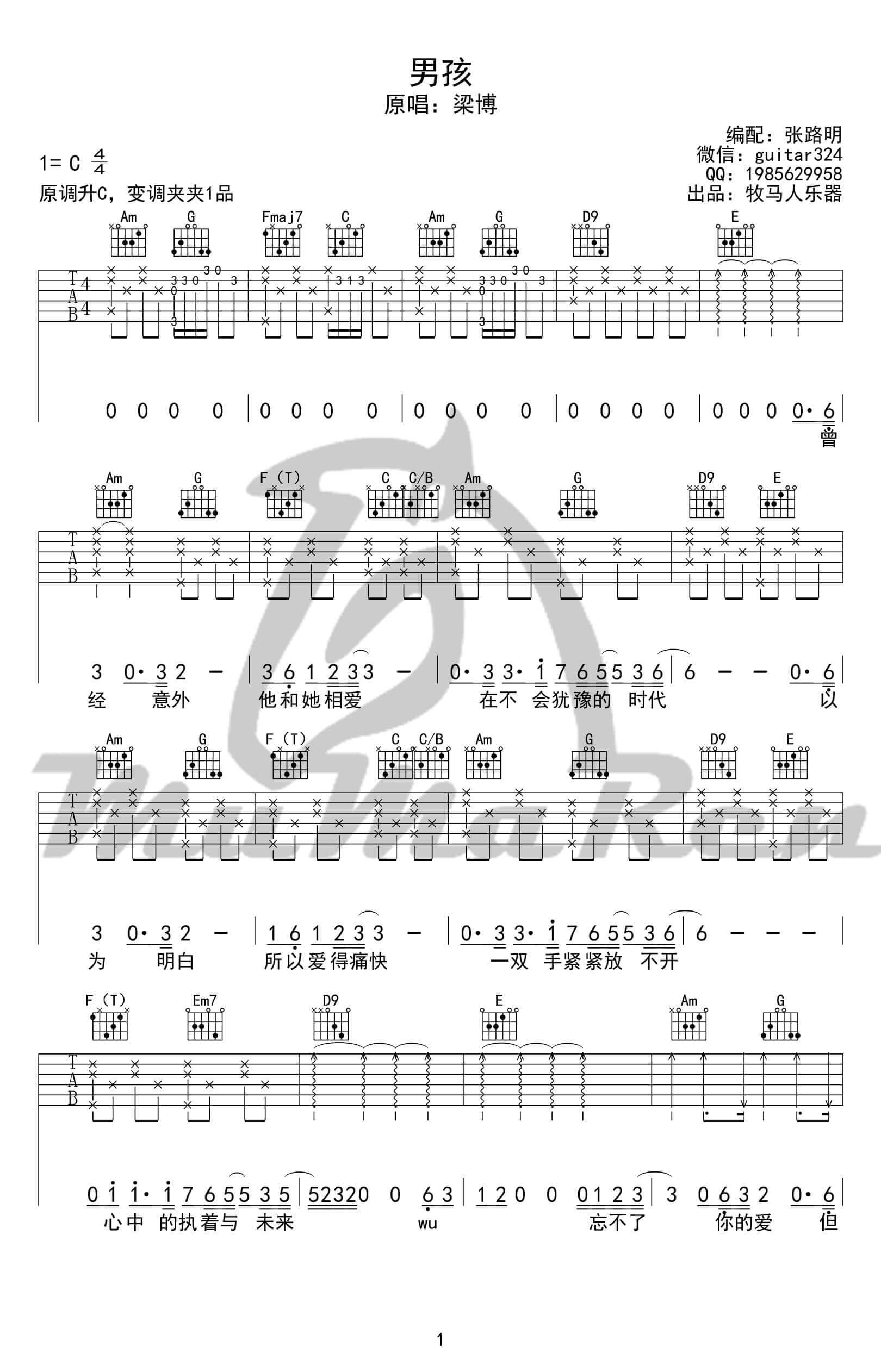 《梁博《男孩吉他谱》(C调)》内容来自于互联网,不能保证内容的准确性与完整性,仅供学习交流欣赏,请勿用于其它用途,内容版权归原作者及来源网站所有,如有侵犯到您的权益请来信告知,我们将及时删除。