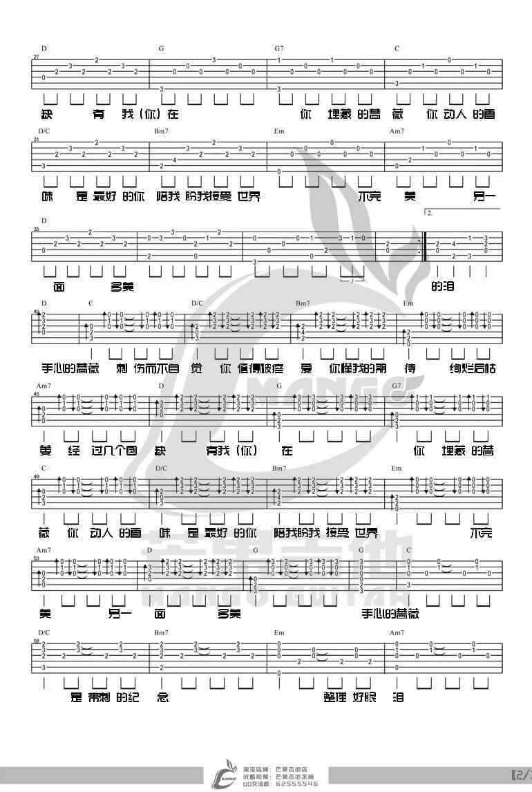 《林俊杰《手心的蔷薇吉他谱》(C调)》内容来自于互联网,不能保证内容的准确性与完整性,仅供学习交流欣赏,请勿用于其它用途,内容版权归原作者及来源网站所有,如有侵犯到您的权益请来信告知,我们将及时删除。