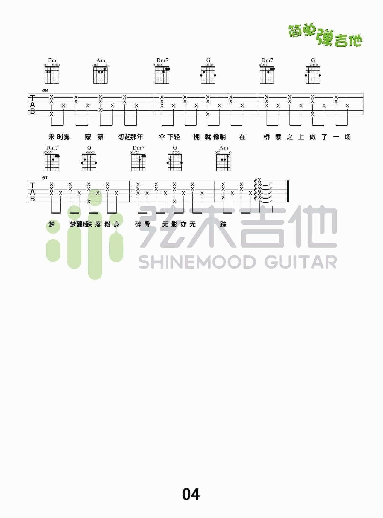 弦木吉他编配完成。歌曲以双笙《我的一个道姑朋友吉他谱》(C调)