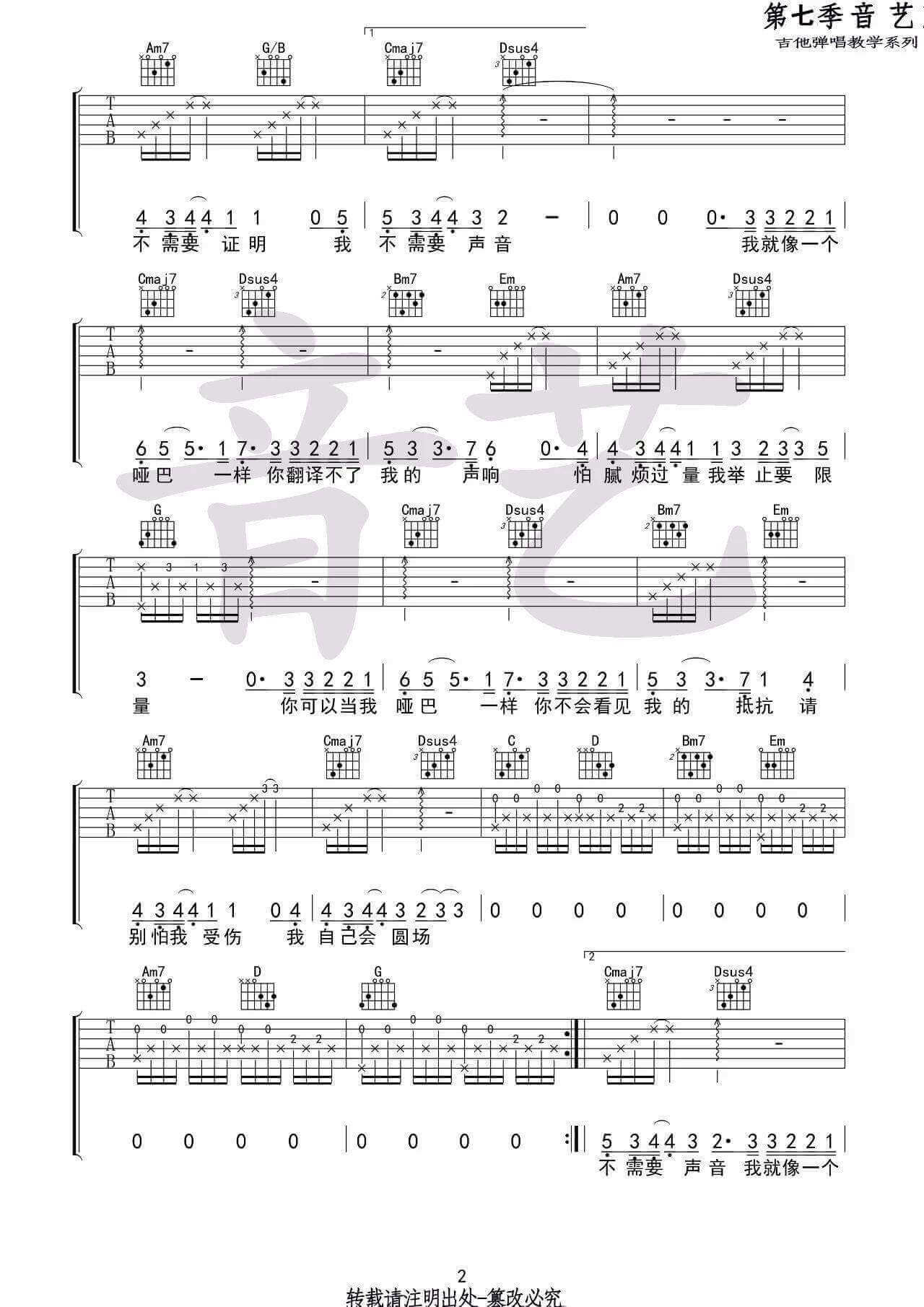 《薛之谦《哑巴吉他谱》(G调)》内容来自于互联网,不能保证内容的准确性与完整性,仅供学习交流欣赏,请勿用于其它用途,内容版权归原作者及来源网站所有,如有侵犯到您的权益请来信告知,我们将及时删除。