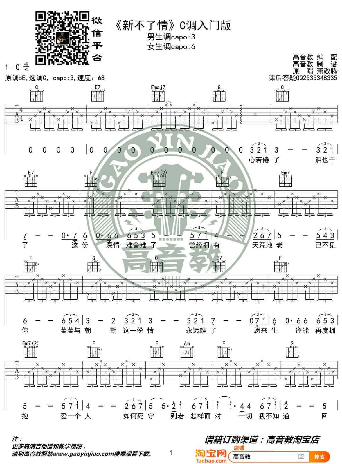 《萧敬腾《新不了情吉他谱》(C调)》内容来自于互联网,不能保证内容的准确性与完整性,仅供学习交流欣赏,请勿用于其它用途,内容版权归原作者及来源网站所有,如有侵犯到您的权益请来信告知,我们将及时删除。
