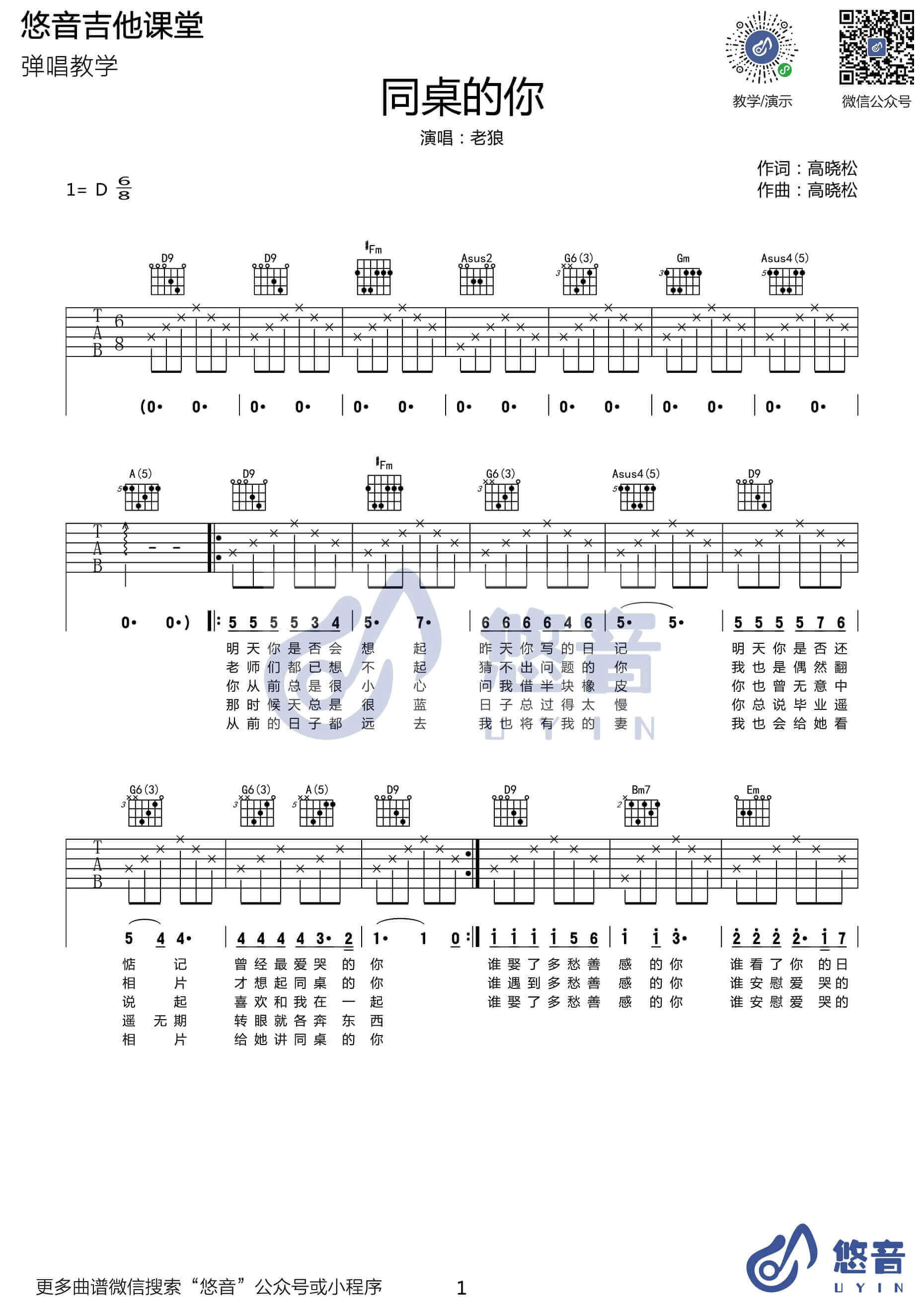 《老狼《同桌的你吉他谱》(D调)》内容来自于互联网,不能保证内容的准确性与完整性,仅供学习交流欣赏,请勿用于其它用途,内容版权归原作者及来源网站所有,如有侵犯到您的权益请来信告知,我们将及时删除。