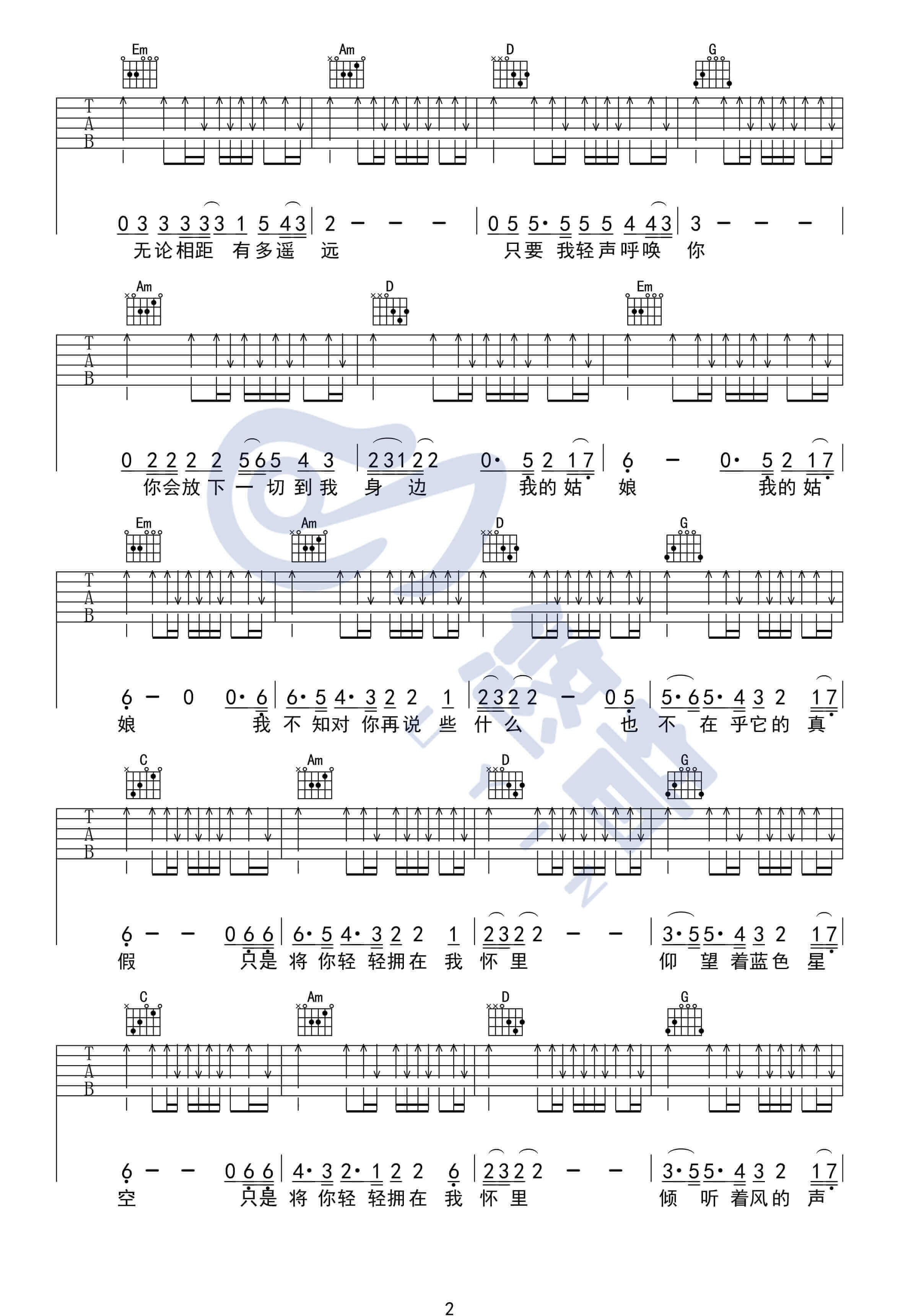 《许巍《星空吉他谱》(G调)》内容来自于互联网,不能保证内容的准确性与完整性,仅供学习交流欣赏,请勿用于其它用途,内容版权归原作者及来源网站所有,如有侵犯到您的权益请来信告知,我们将及时删除。