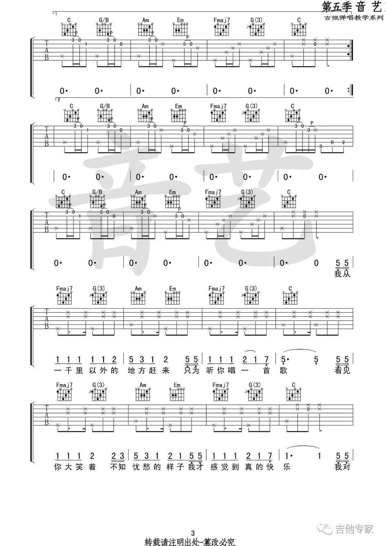 《花粥《小相思吉他谱》(C调)》内容来自于互联网,不能保证内容的准确性与完整性,仅供学习交流欣赏,请勿用于其它用途,内容版权归原作者及来源网站所有,如有侵犯到您的权益请来信告知,我们将及时删除。