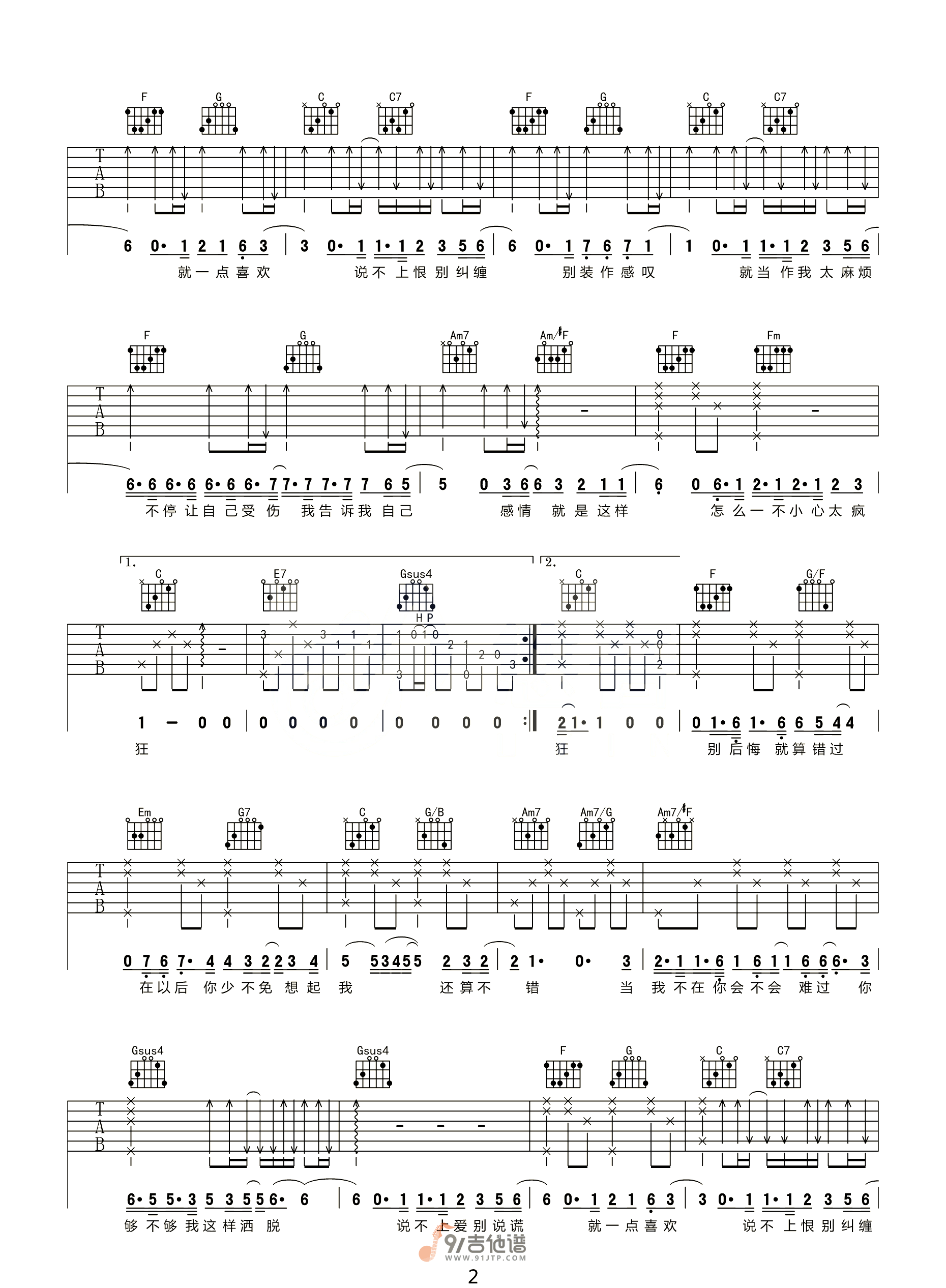 《袁娅维《说散就散吉他谱》(C调)》内容来自于互联网,不能保证内容的准确性与完整性,仅供学习交流欣赏,请勿用于其它用途,内容版权归原作者及来源网站所有,如有侵犯到您的权益请来信告知,我们将及时删除。