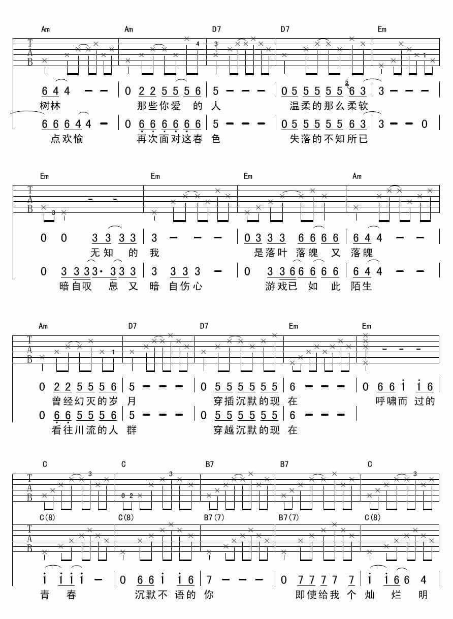 大鹏《被禁忌的游戏吉他谱》(G调)