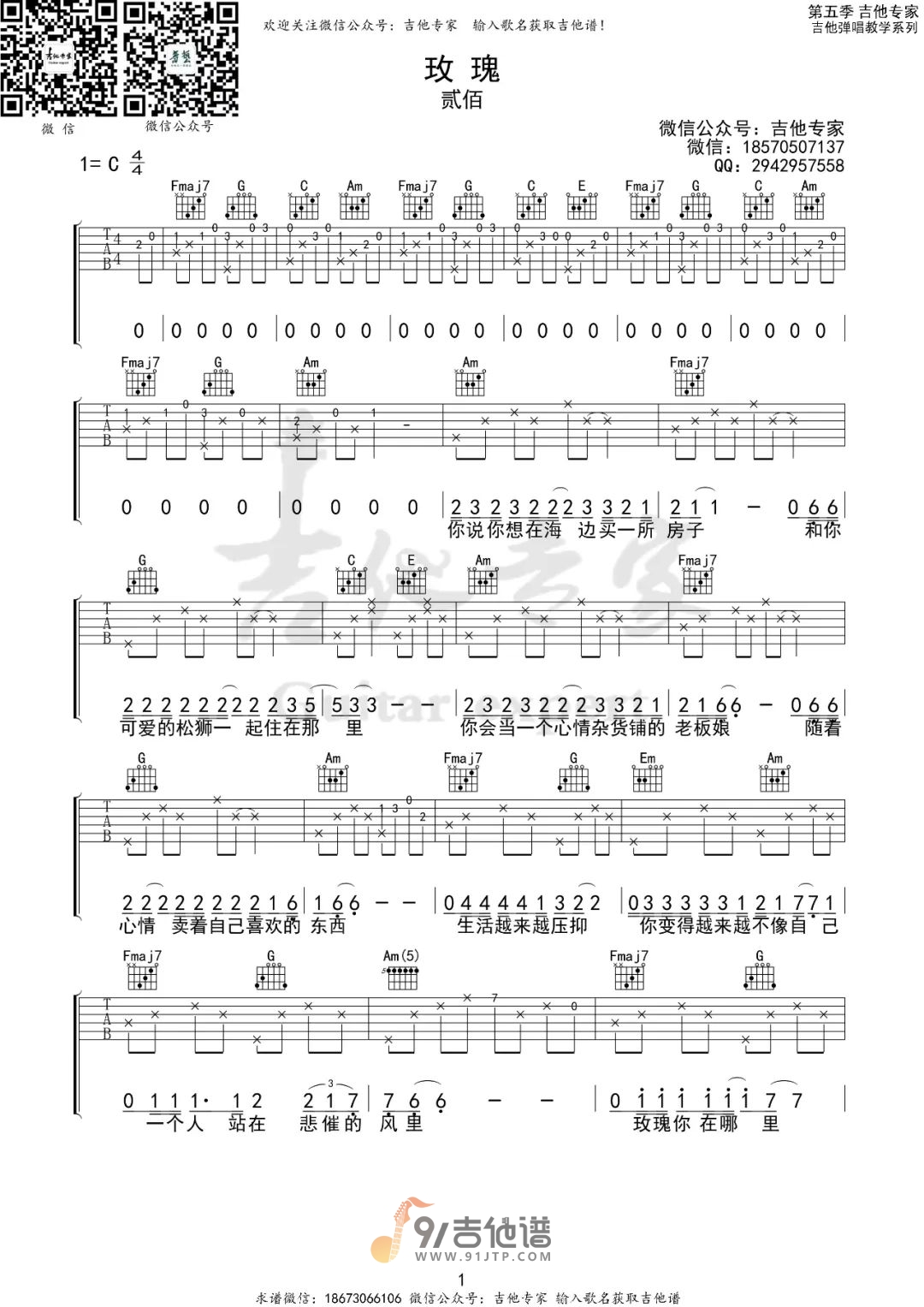 本文标题 《贰佰《玫瑰吉他谱》(C调)》,网址:https://www.21qupu.com/guitar/4207.html