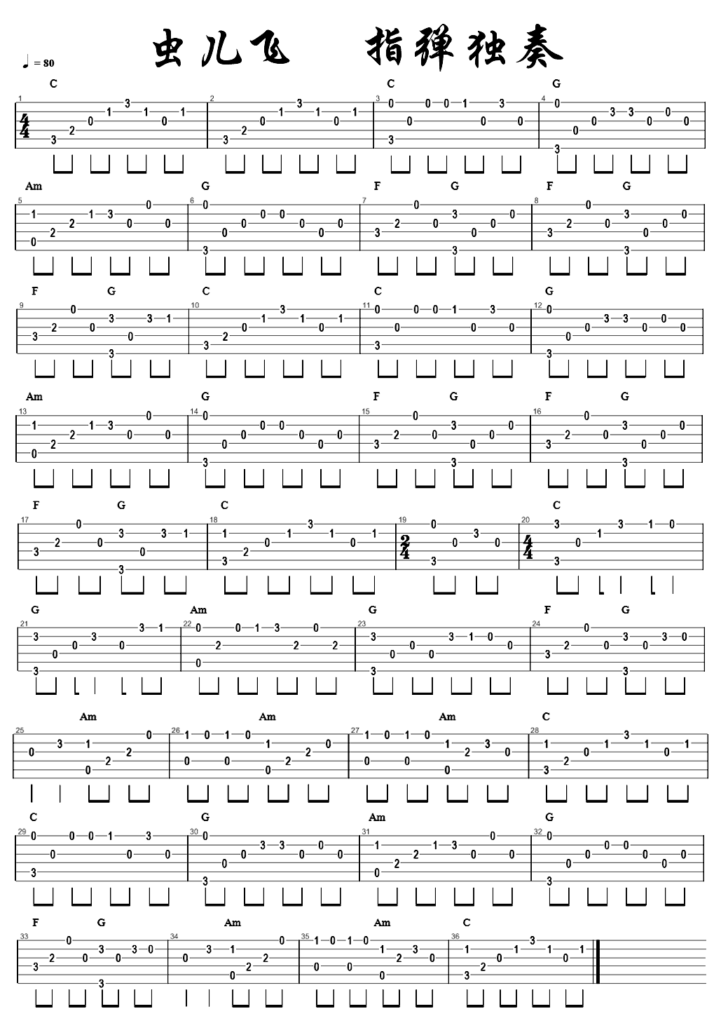 《虫儿飞吉他谱》(C调)