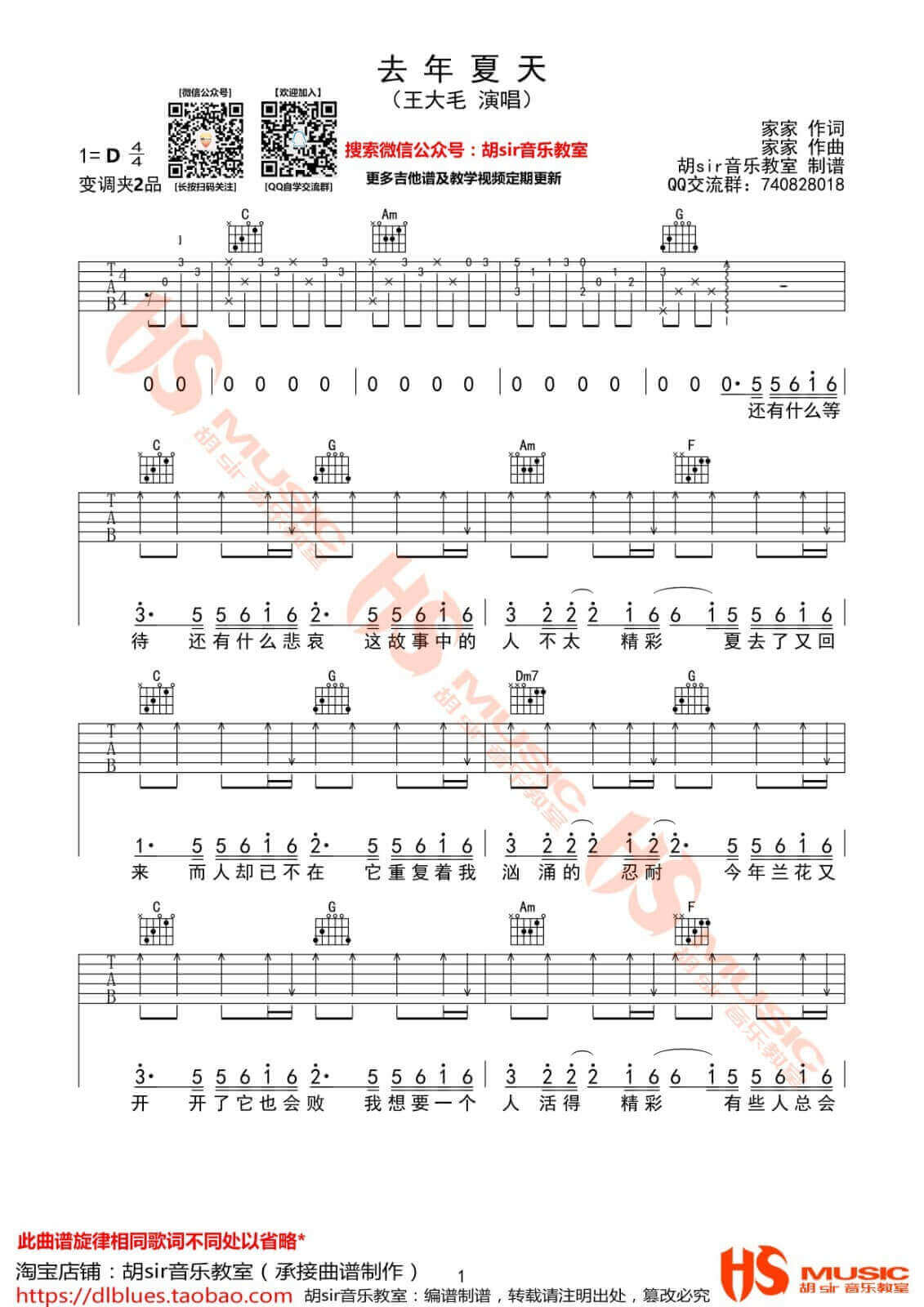 这首去年夏天吉他谱采用了D调指法,由胡sir音乐教室编配。它是一首励志歌曲,融合了少女的青涩纯真与爽朗洒脱,完美契合了曲调风格。歌曲中充满了青涩与懵懂的情感,旋律清澈耐人回味,轻快跳跃间夹杂着一丝伤感。王大毛独特的、像被天使吻过的声音带来了磁性和慵懒的感觉,将