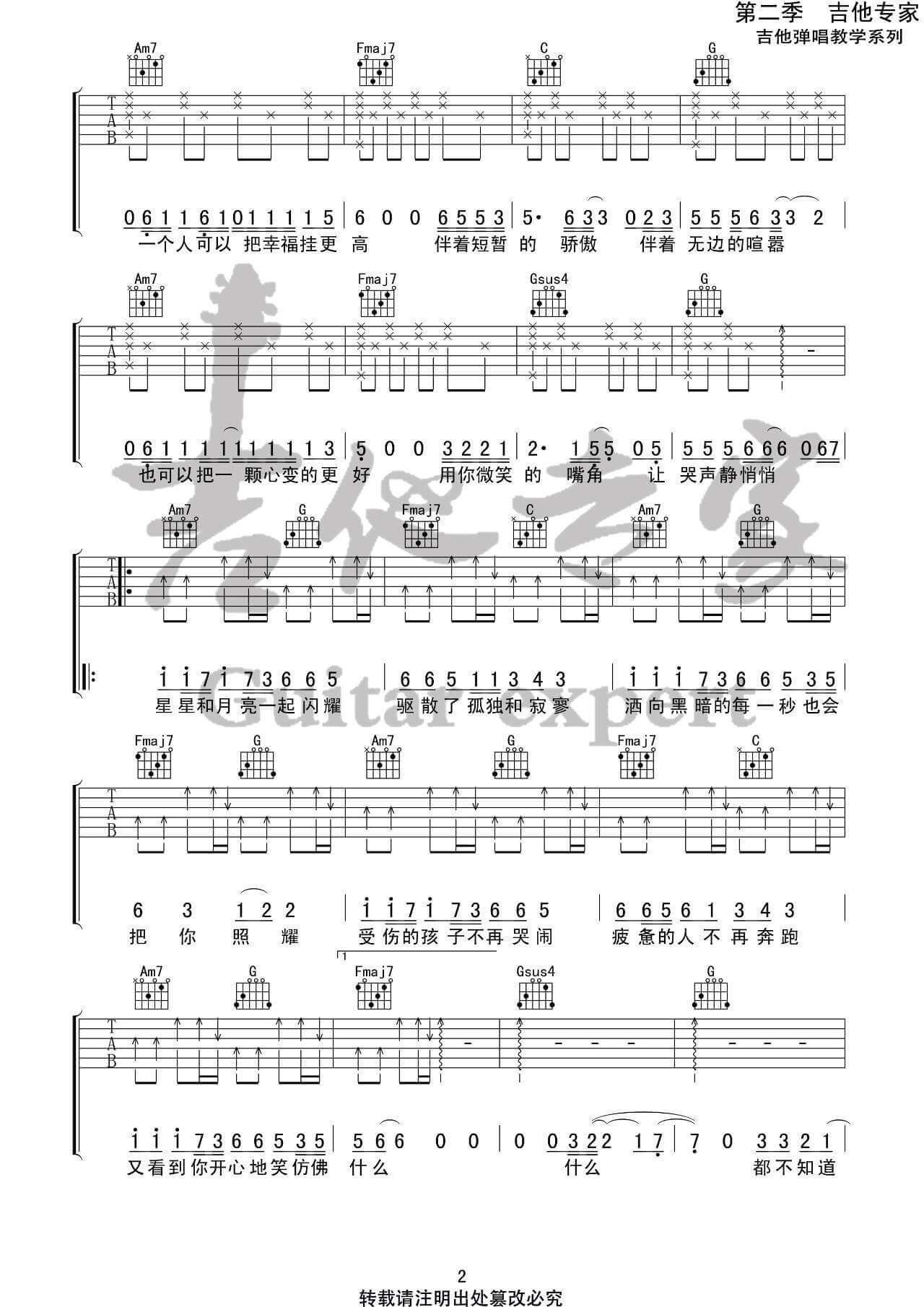 这首C调吉他谱由专业吉他手编曲,名为《我不知道》。从清澈的钢琴声和人声开始,氛围冷静、孤寂,情绪逐渐升腾。起初以单调却清晰的声音为主,但第二部分突然加入了电吉他和鼓声,接着是吉他的独奏,空灵而嘈杂,错综复杂。高潮部分有一段咿哟的大合唱,气势磅礴,为整首歌曲注入