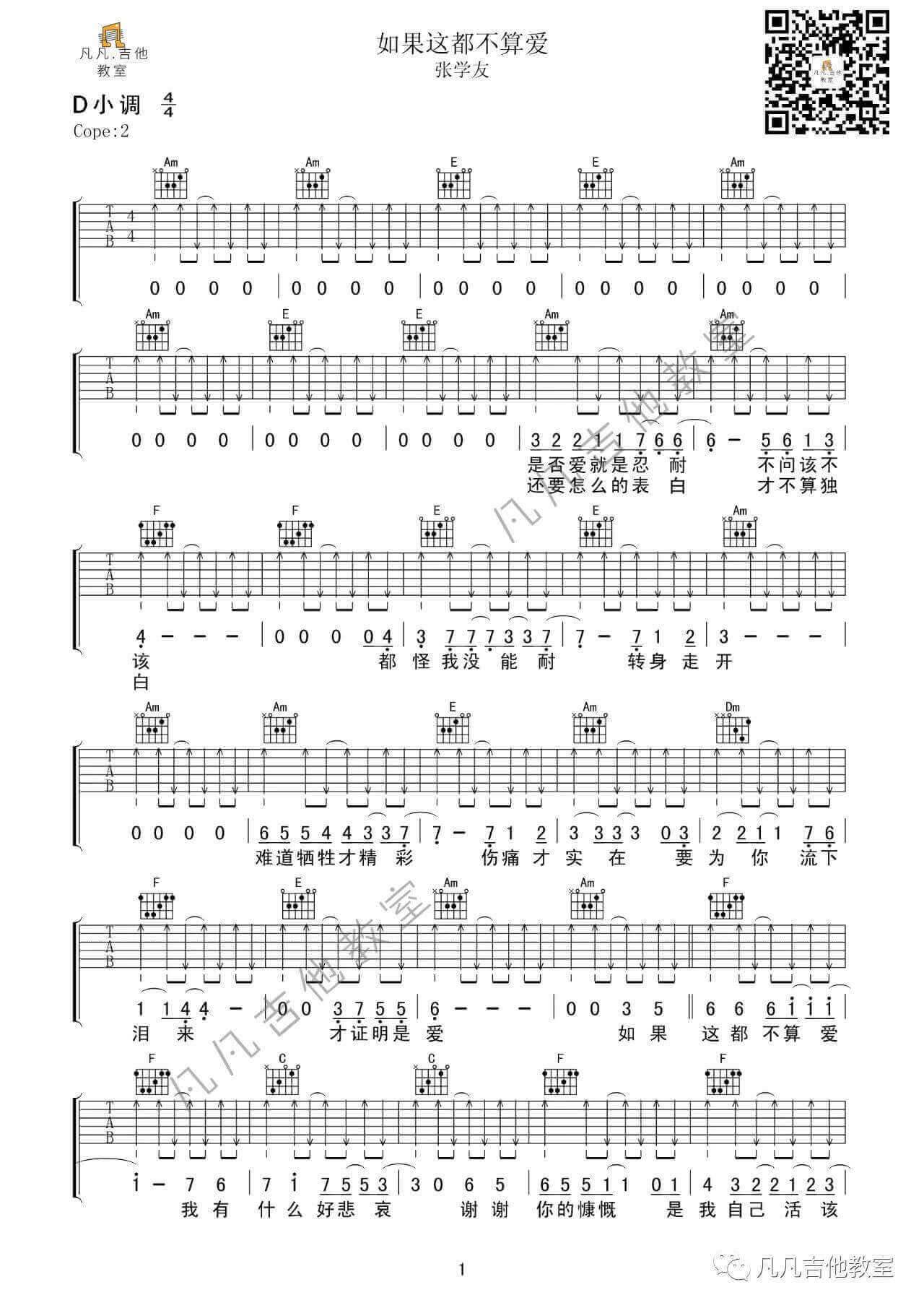 这首歌《如果这都不算爱》的吉他谱采用了D调指法,由凡凡吉他教室制作。张学友演唱的这首歌表达了创作者对于“爱”的深刻思考和困惑。歌曲充满情感,吉他弹唱演示及视频教学也为乐迷提供了学习的机会。通过这首歌曲,人们可以感受到作者对爱情的复杂情感,以及对于爱的真实性质的