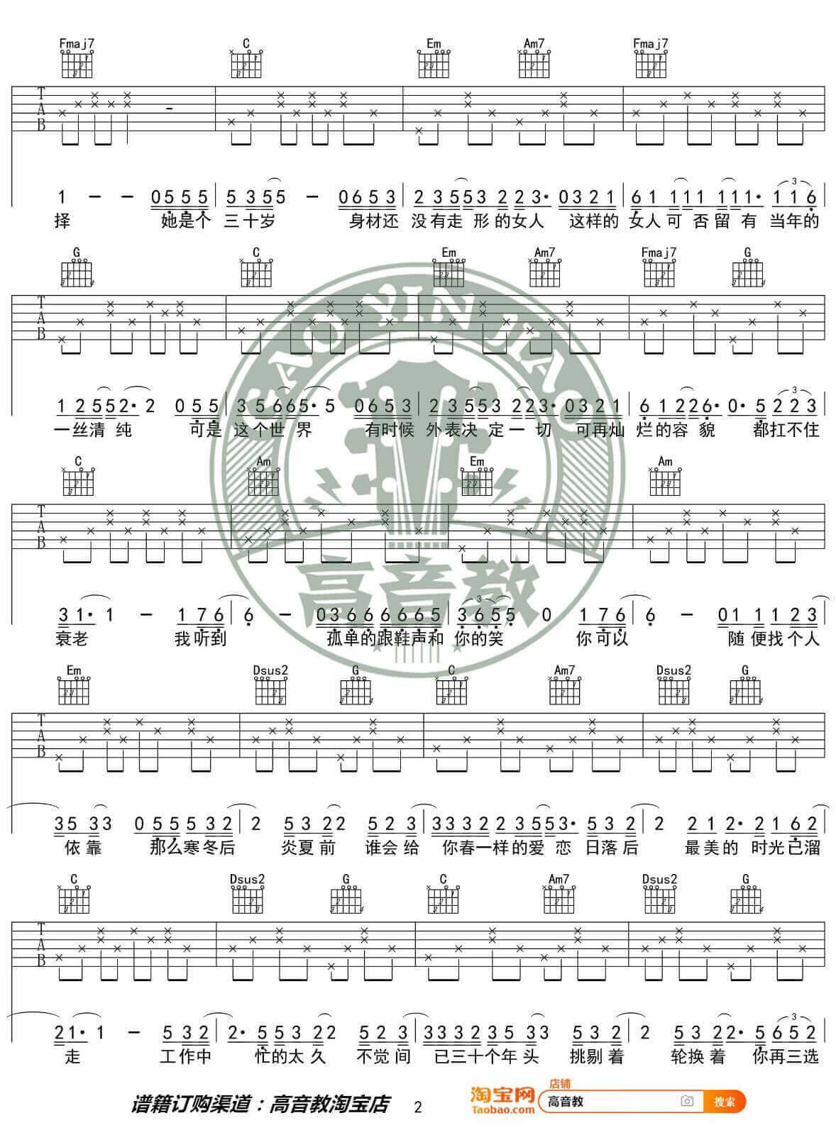 《赵雷《三十岁的女人吉他谱》(C调)》内容来自于互联网,不能保证内容的准确性与完整性,仅供学习交流欣赏,请勿用于其它用途,内容版权归原作者及来源网站所有,如有侵犯到您的权益请来信告知,我们将及时删除。