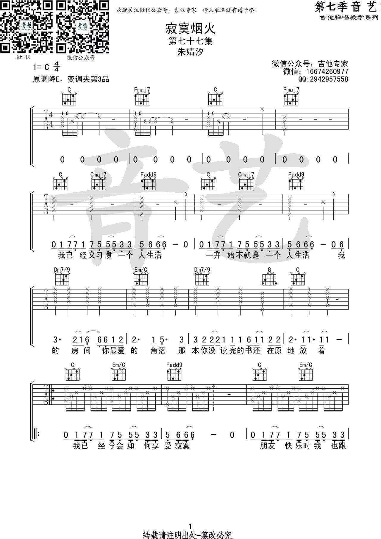 《《寂寞烟火吉他谱》(C调)》内容来自于互联网,不能保证内容的准确性与完整性,仅供学习交流欣赏,请勿用于其它用途,内容版权归原作者及来源网站所有,如有侵犯到您的权益请来信告知,我们将及时删除。