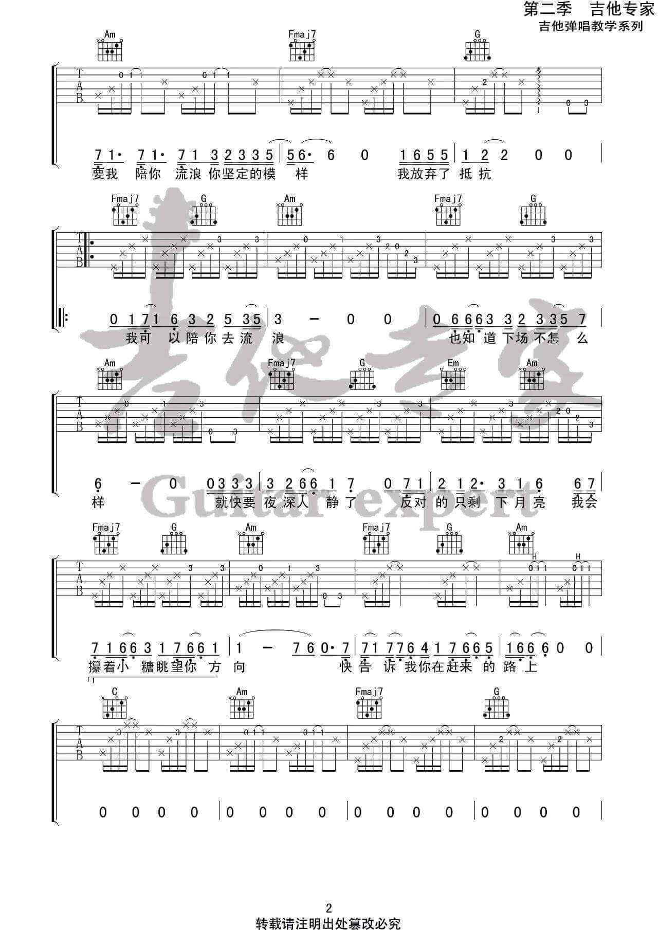 《薛之谦《陪你去流浪吉他谱》(C调)》内容来自于互联网,不能保证内容的准确性与完整性,仅供学习交流欣赏,请勿用于其它用途,内容版权归原作者及来源网站所有,如有侵犯到您的权益请来信告知,我们将及时删除。