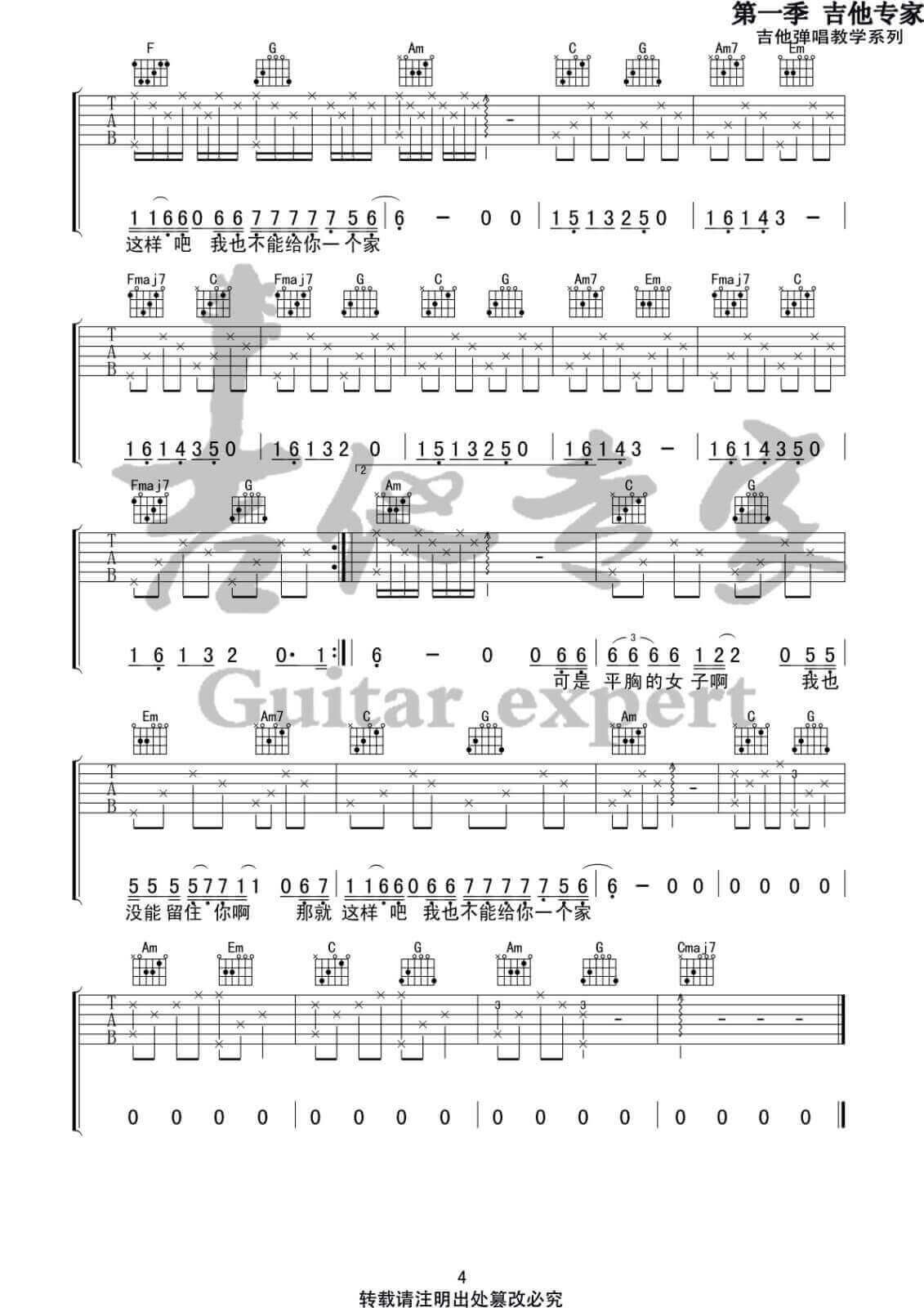 《《平胸女子吉他谱》(C调)》内容来自于互联网,不能保证内容的准确性与完整性,仅供学习交流欣赏,请勿用于其它用途,内容版权归原作者及来源网站所有,如有侵犯到您的权益请来信告知,我们将及时删除。