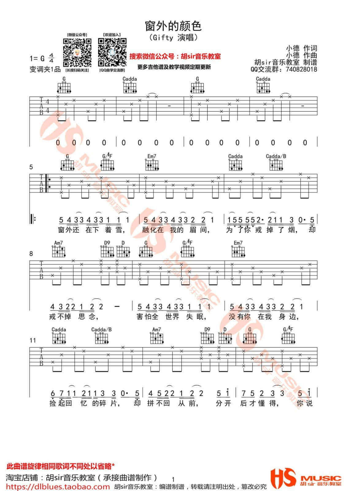 《窗外的颜色》吉他谱以G调指法呈现,由胡sir音乐教室编配完成。
