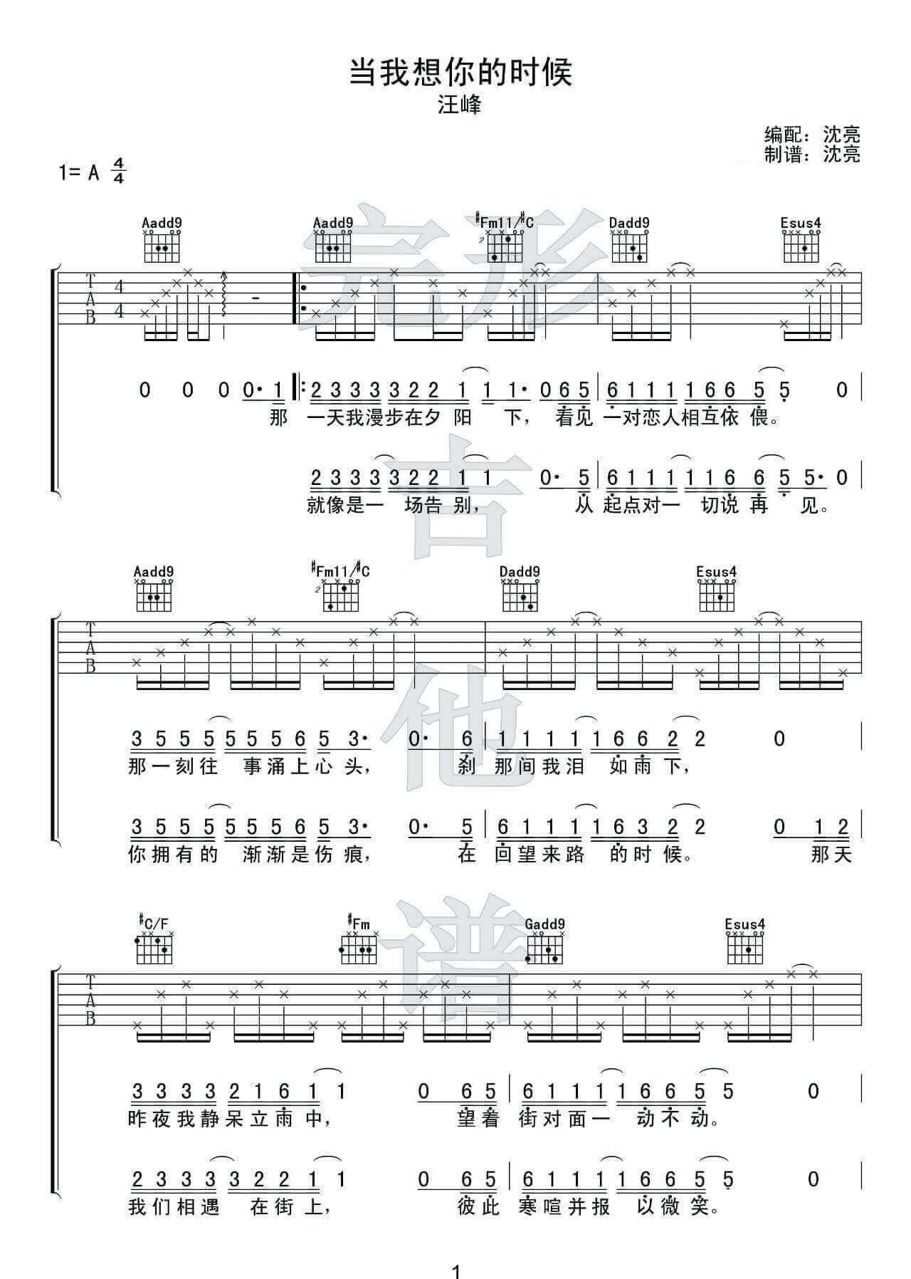 《汪峰《当我想你的时候吉他谱》(A调)》内容来自于互联网,不能保证内容的准确性与完整性,仅供学习交流欣赏,请勿用于其它用途,内容版权归原作者及来源网站所有,如有侵犯到您的权益请来信告知,我们将及时删除。