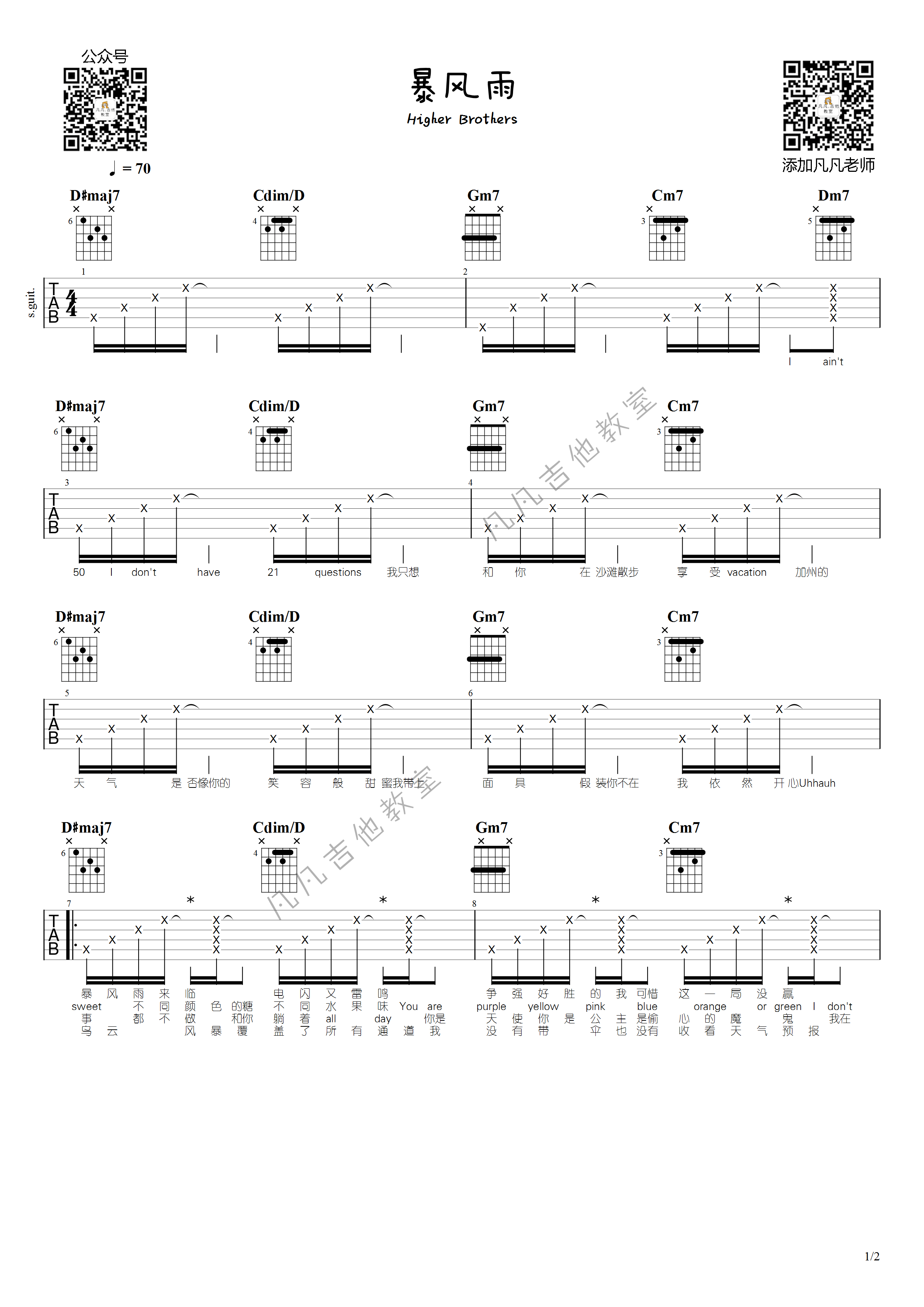 《马思唯《暴风雨吉他谱》(G调)》内容来自于互联网,不能保证内容的准确性与完整性,仅供学习交流欣赏,请勿用于其它用途,内容版权归原作者及来源网站所有,如有侵犯到您的权益请来信告知,我们将及时删除。