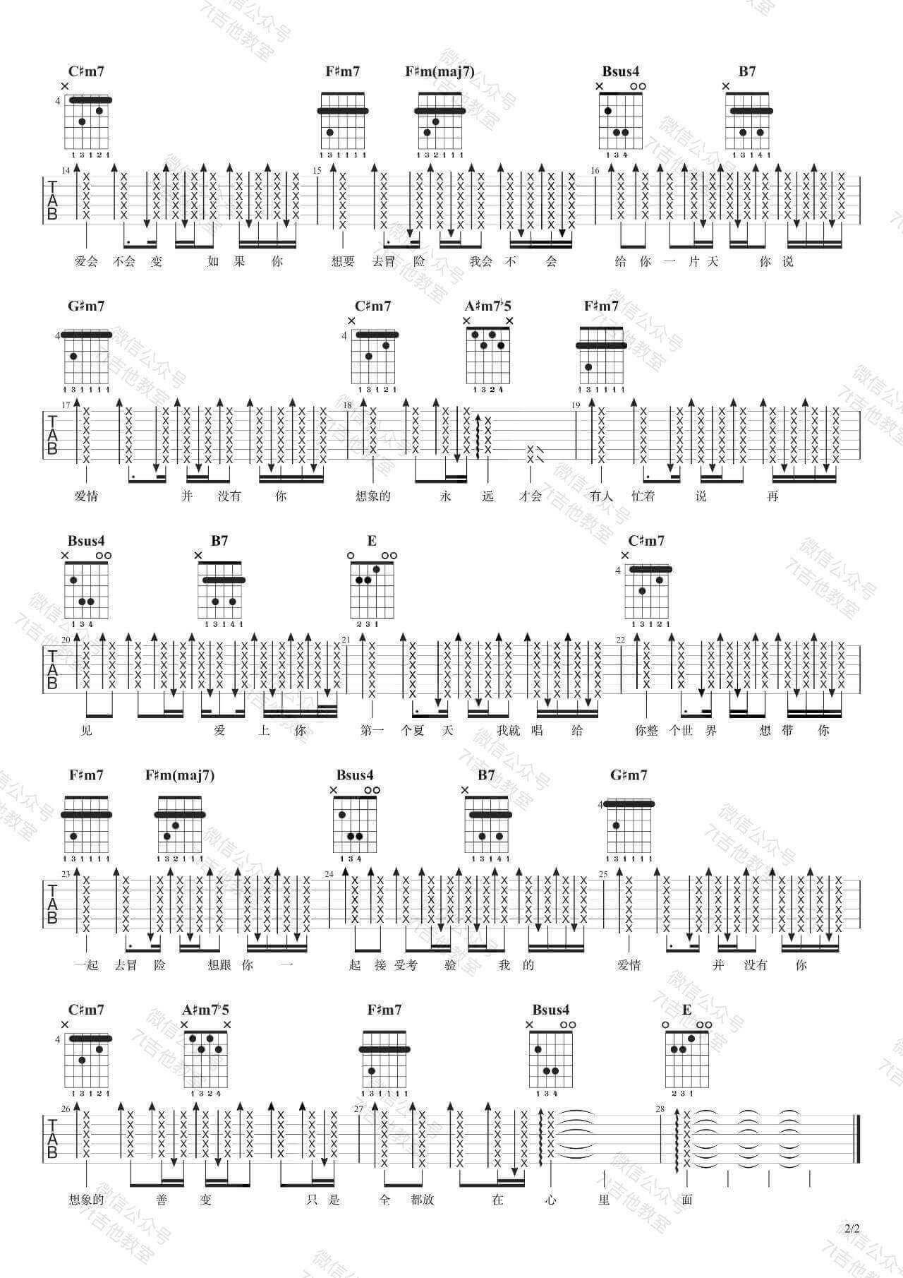 《胡夏《爱夏吉他谱》(E调)》内容来自于互联网,不能保证内容的准确性与完整性,仅供学习交流欣赏,请勿用于其它用途,内容版权归原作者及来源网站所有,如有侵犯到您的权益请来信告知,我们将及时删除。