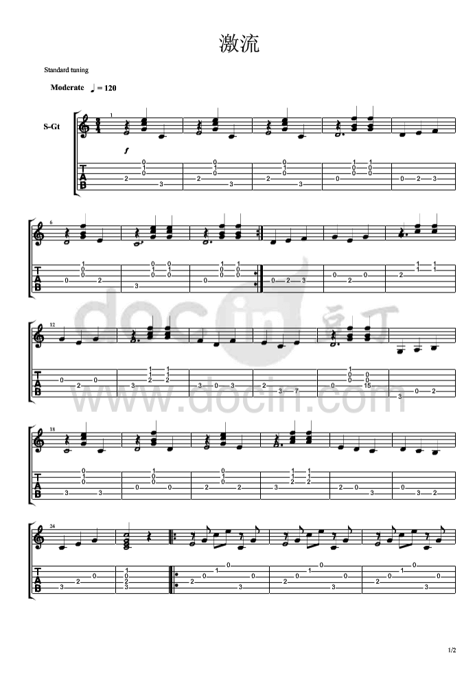 《《激流吉他谱》》内容来自于互联网,不能保证内容的准确性与完整性,仅供学习交流欣赏,请勿用于其它用途,内容版权归原作者及来源网站所有,如有侵犯到您的权益请来信告知,我们将及时删除。
