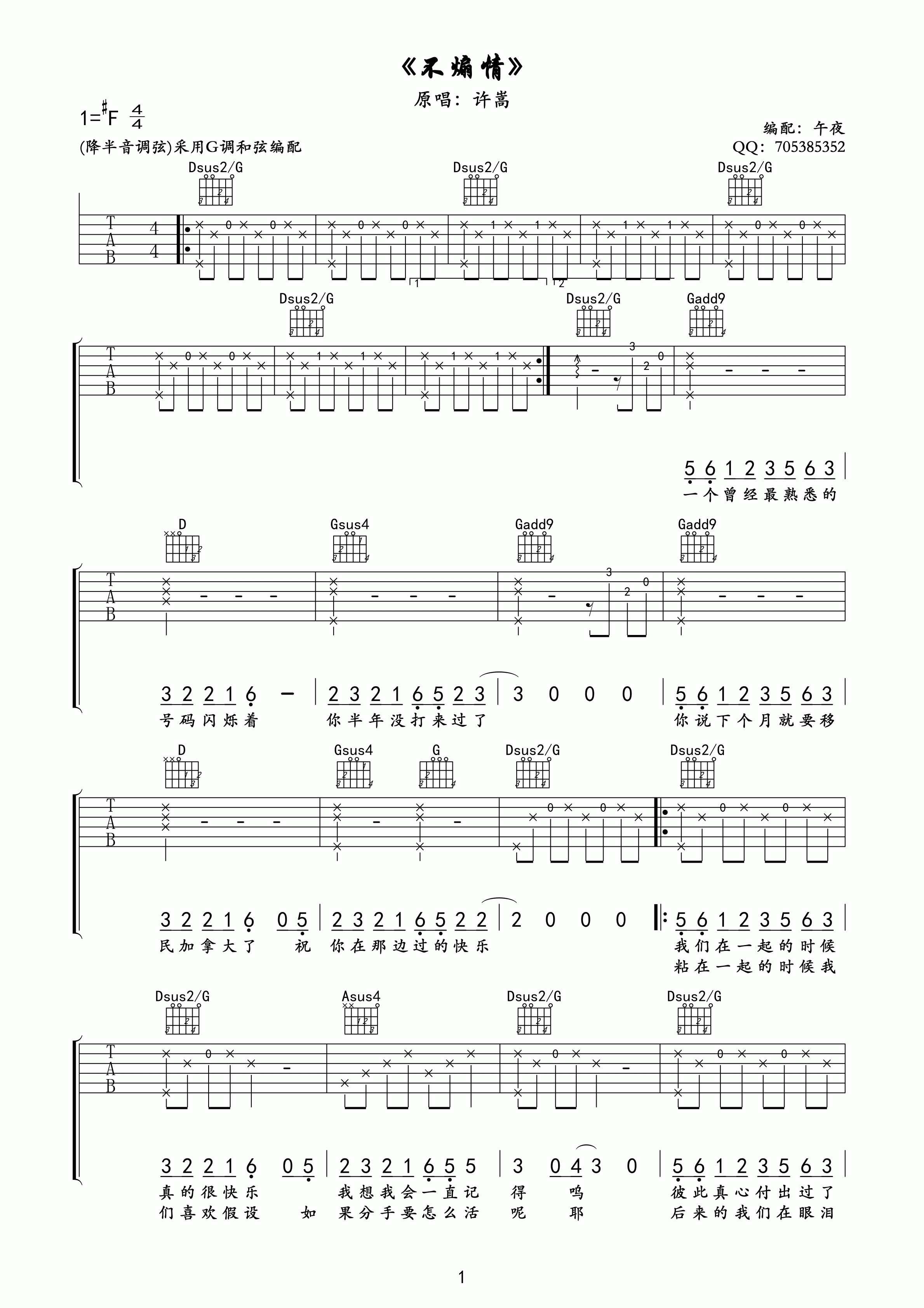 《许嵩《不煽情吉他谱》(G调)》内容来自于互联网,不能保证内容的准确性与完整性,仅供学习交流欣赏,请勿用于其它用途,内容版权归原作者及来源网站所有,如有侵犯到您的权益请来信告知,我们将及时删除。