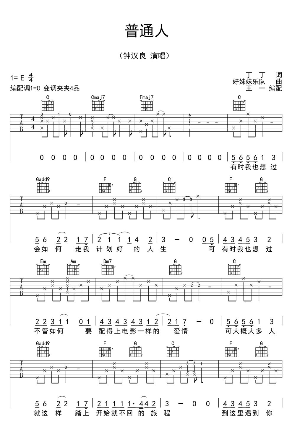好妹妹《普通人 钟汉良吉他谱》