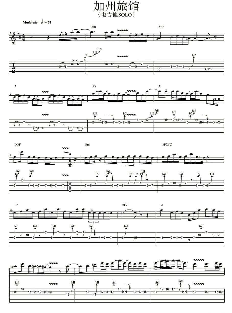 《《加州旅馆solo吉他谱》》内容来自于互联网,不能保证内容的准确性与完整性,仅供学习交流欣赏,请勿用于其它用途,内容版权归原作者及来源网站所有,如有侵犯到您的权益请来信告知,我们将及时删除。