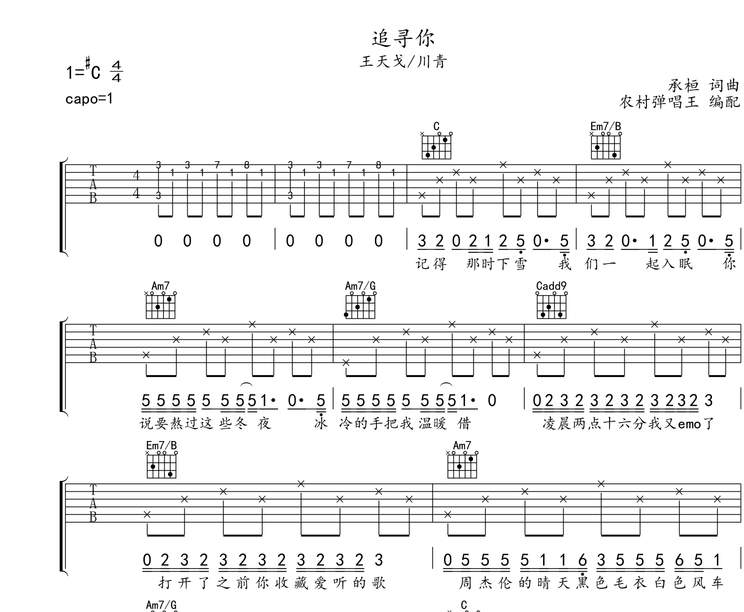 《川青《追寻你C调吉他谱》(C调)》内容来自于互联网,不能保证内容的准确性与完整性,仅供学习交流欣赏,请勿用于其它用途,内容版权归原作者及来源网站所有,如有侵犯到您的权益请来信告知,我们将及时删除。