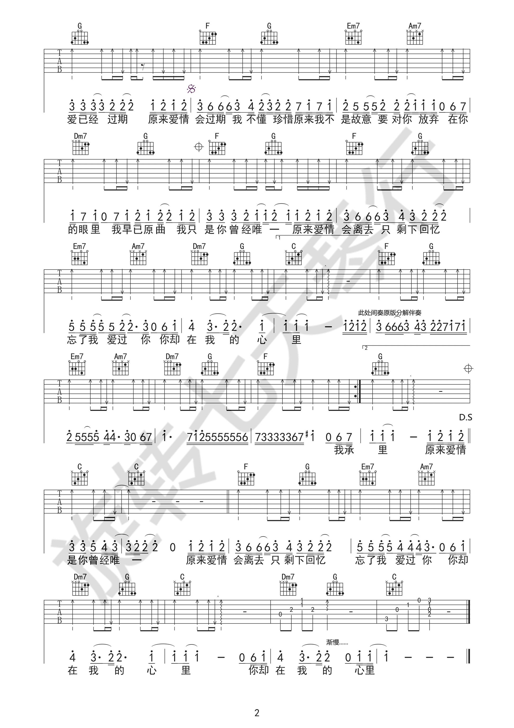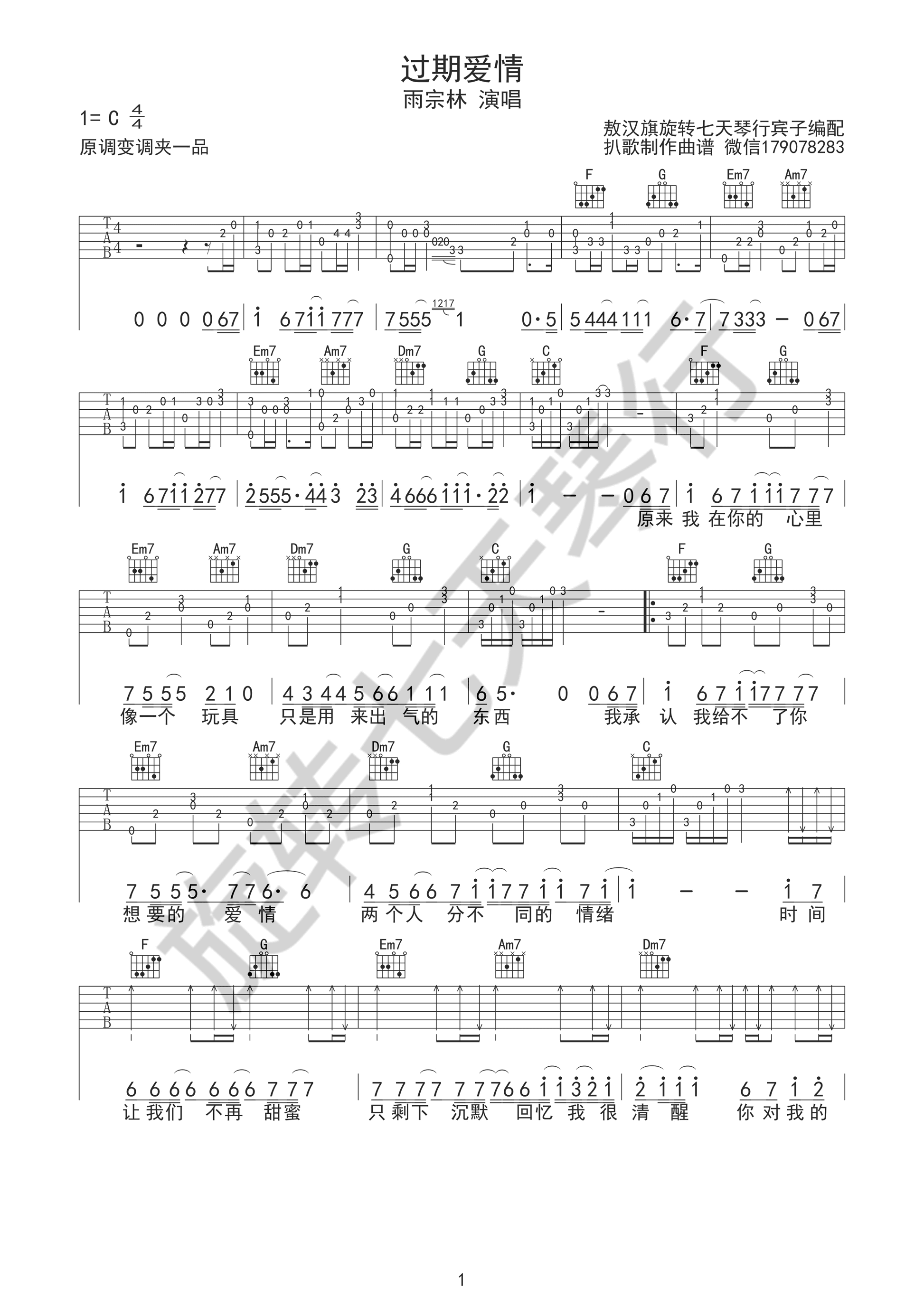 《《过期爱情吉他谱》(C调)》内容来自于互联网,不能保证内容的准确性与完整性,仅供学习交流欣赏,请勿用于其它用途,内容版权归原作者及来源网站所有,如有侵犯到您的权益请来信告知,我们将及时删除。