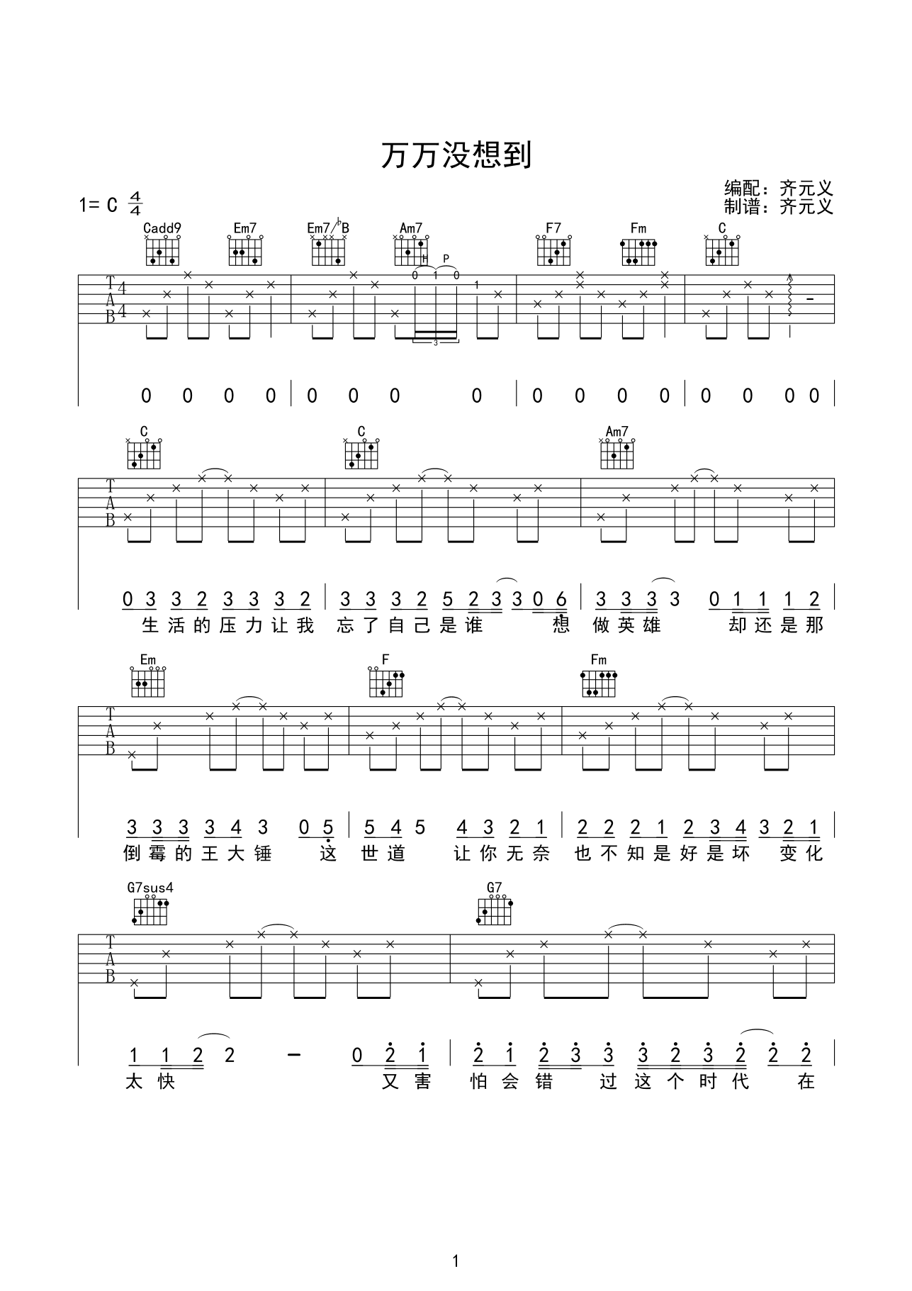 《万万没想到》的吉他谱采用了C调指法,由齐元义编配而成。这首歌曲旋律欢快,是一部让人在欢笑中释放心情的作品,同时也蕴含了一层讽刺意味。听闻这首温柔的吉他曲能够让耳朵怀孕,引发了许多人的好奇和兴趣。因此,迫切建议大家学习这份谱子,掌握了它,或许能在轻松的氛围中展