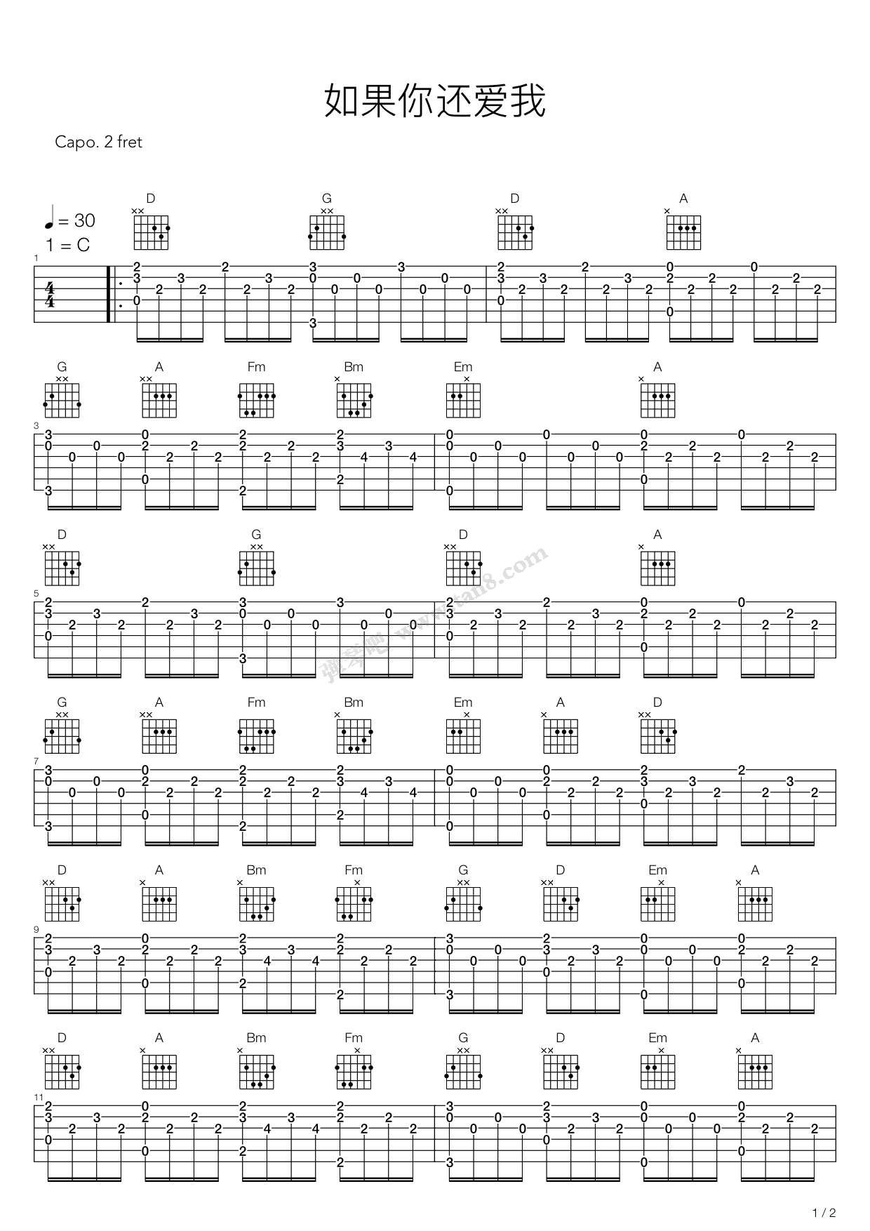 《光良《如果你还爱我吉他谱》(C调)》内容来自于互联网,不能保证内容的准确性与完整性,仅供学习交流欣赏,请勿用于其它用途,内容版权归原作者及来源网站所有,如有侵犯到您的权益请来信告知,我们将及时删除。
