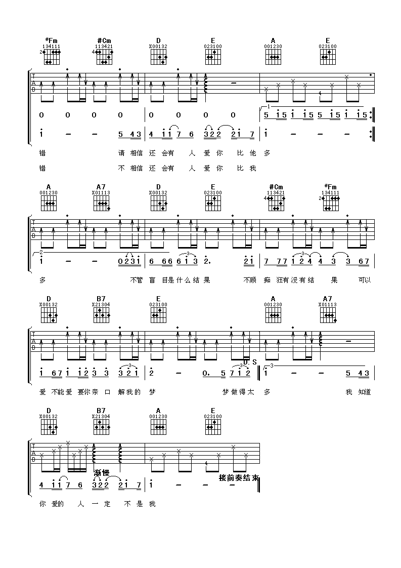 《方力申《可不可以爱吉他谱》(A调)》内容来自于互联网,不能保证内容的准确性与完整性,仅供学习交流欣赏,请勿用于其它用途,内容版权归原作者及来源网站所有,如有侵犯到您的权益请来信告知,我们将及时删除。