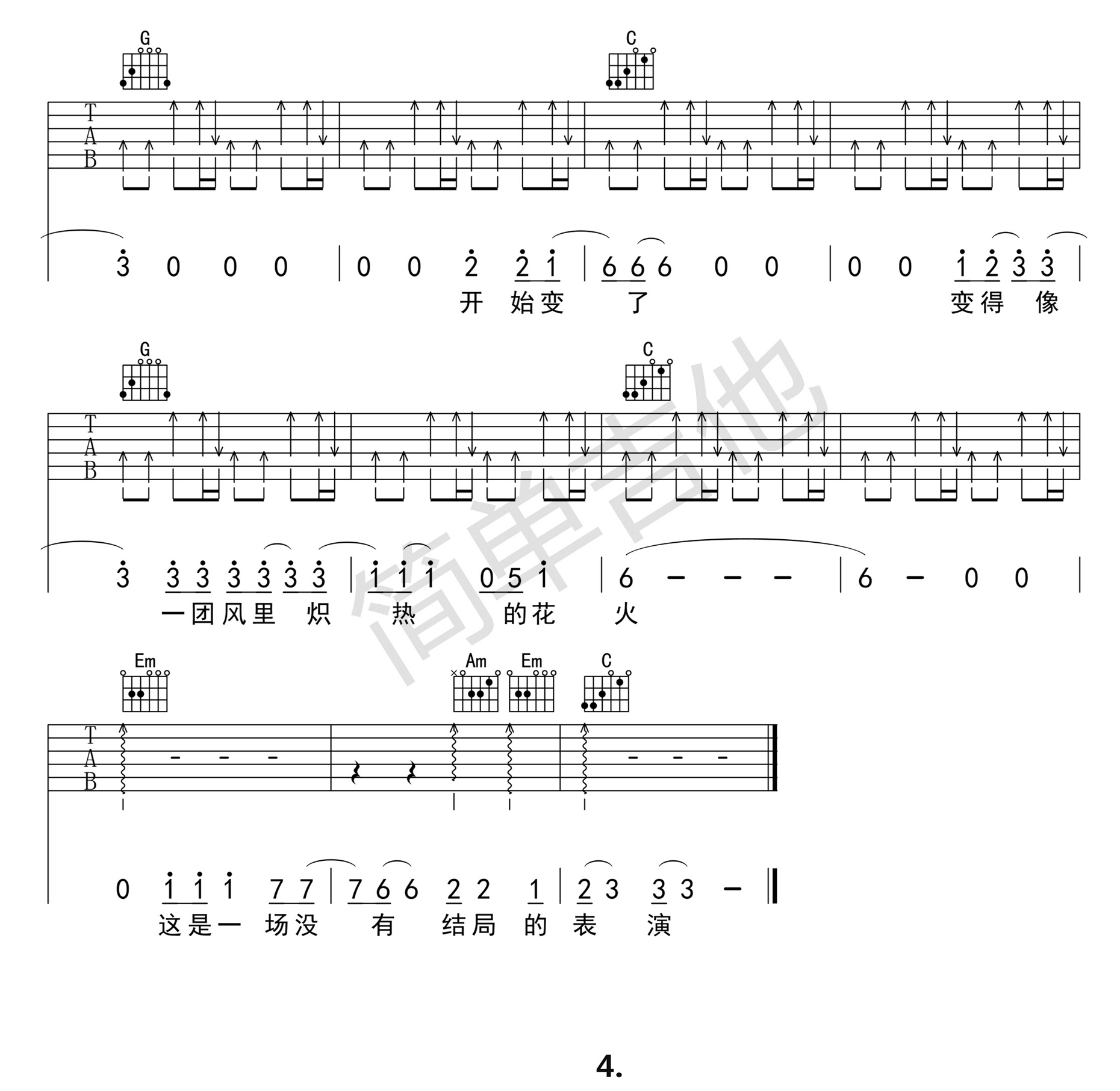 《梁咏琪《花火吉他谱》(G调)》内容来自于互联网,不能保证内容的准确性与完整性,仅供学习交流欣赏,请勿用于其它用途,内容版权归原作者及来源网站所有,如有侵犯到您的权益请来信告知,我们将及时删除。