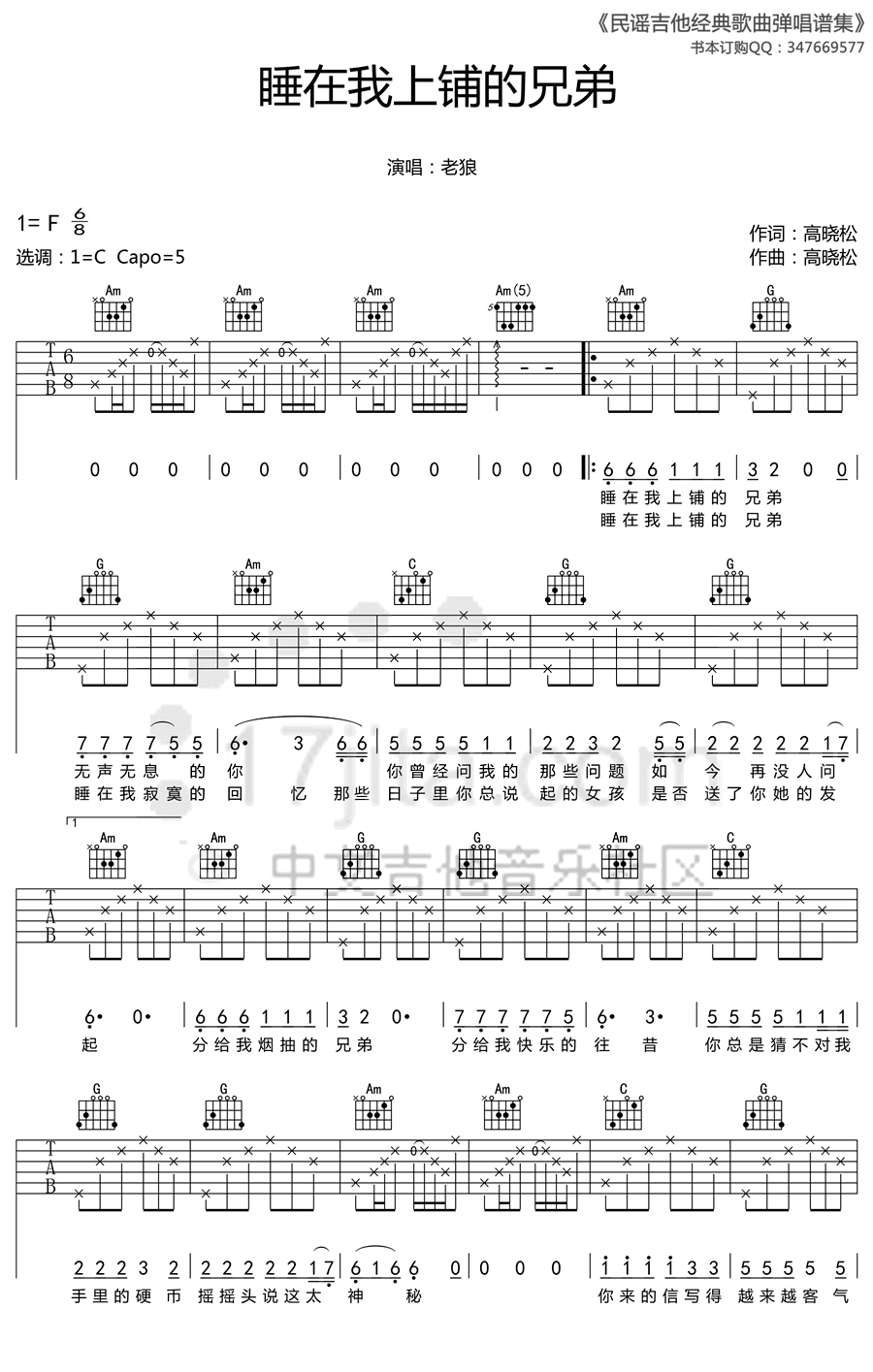 《老狼《睡我上铺的兄弟吉他谱》(F调)》内容来自于互联网,不能保证内容的准确性与完整性,仅供学习交流欣赏,请勿用于其它用途,内容版权归原作者及来源网站所有,如有侵犯到您的权益请来信告知,我们将及时删除。