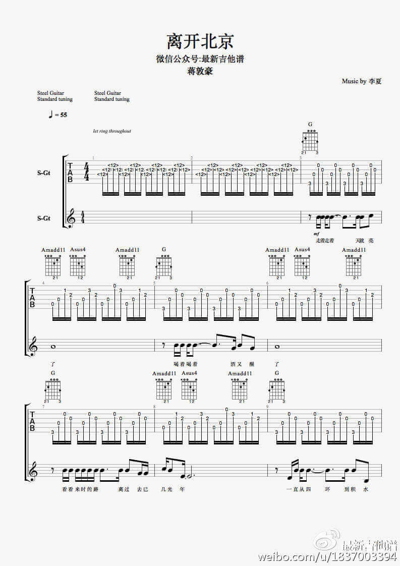 《蒋敦豪《离开北京吉他谱》(G调)》内容来自于互联网,不能保证内容的准确性与完整性,仅供学习交流欣赏,请勿用于其它用途,内容版权归原作者及来源网站所有,如有侵犯到您的权益请来信告知,我们将及时删除。