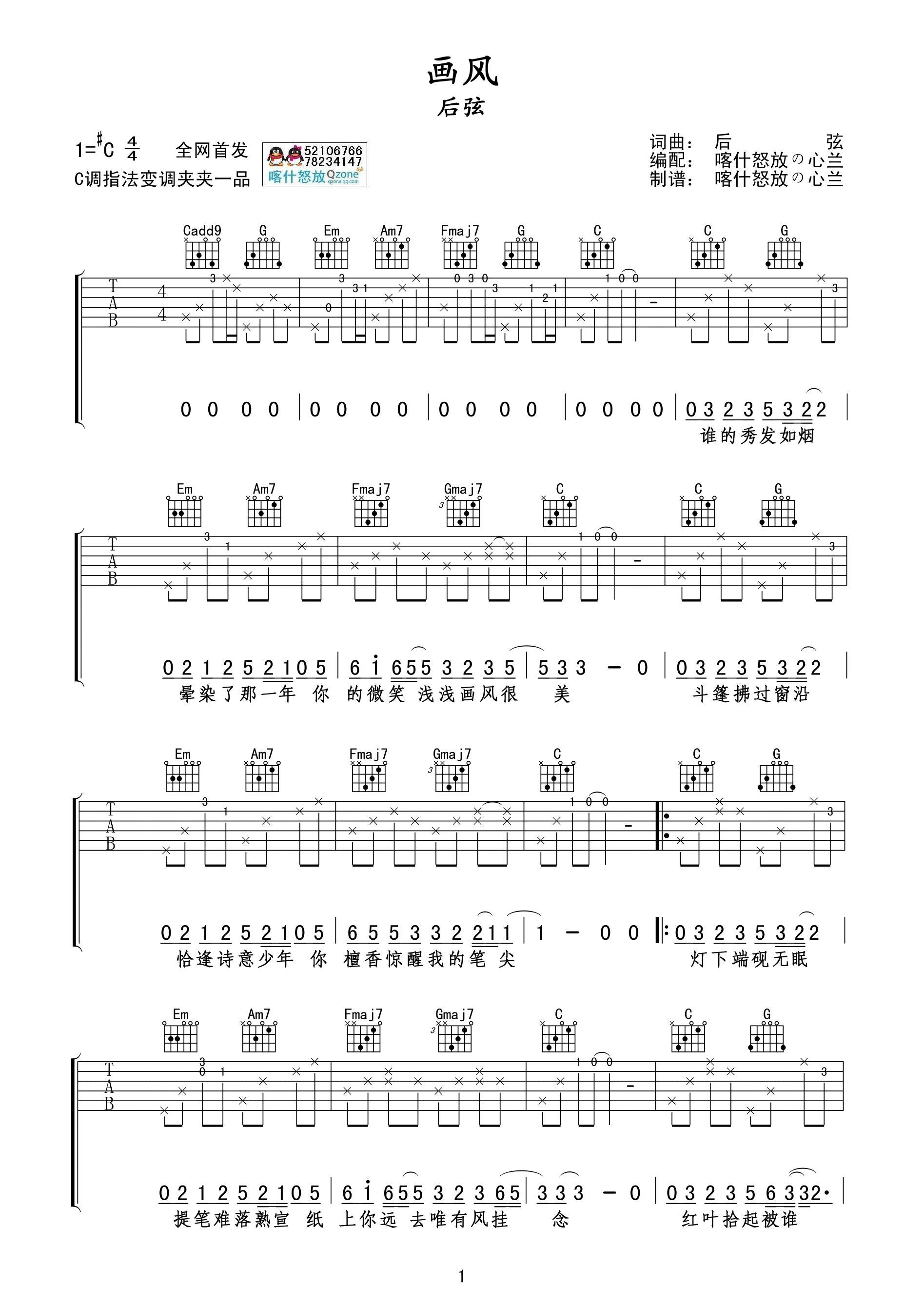 《后弦《画风吉他谱》(C调)》内容来自于互联网,不能保证内容的准确性与完整性,仅供学习交流欣赏,请勿用于其它用途,内容版权归原作者及来源网站所有,如有侵犯到您的权益请来信告知,我们将及时删除。
