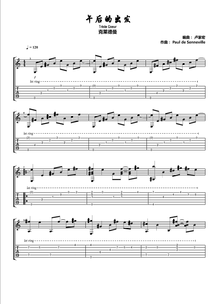 午后的出发吉他谱是由卢家宏编配完成的,深受许多人的喜爱和支持。这首歌曲是一首动人的纯音乐作品,充满温暖的午后氛围。除了这首歌,同样备受好评的还有《爸爸去哪儿》吉他谱,也是非常不错的选择。欢迎大家一起学习,感受这些美妙旋律带来的愉悦和共鸣。